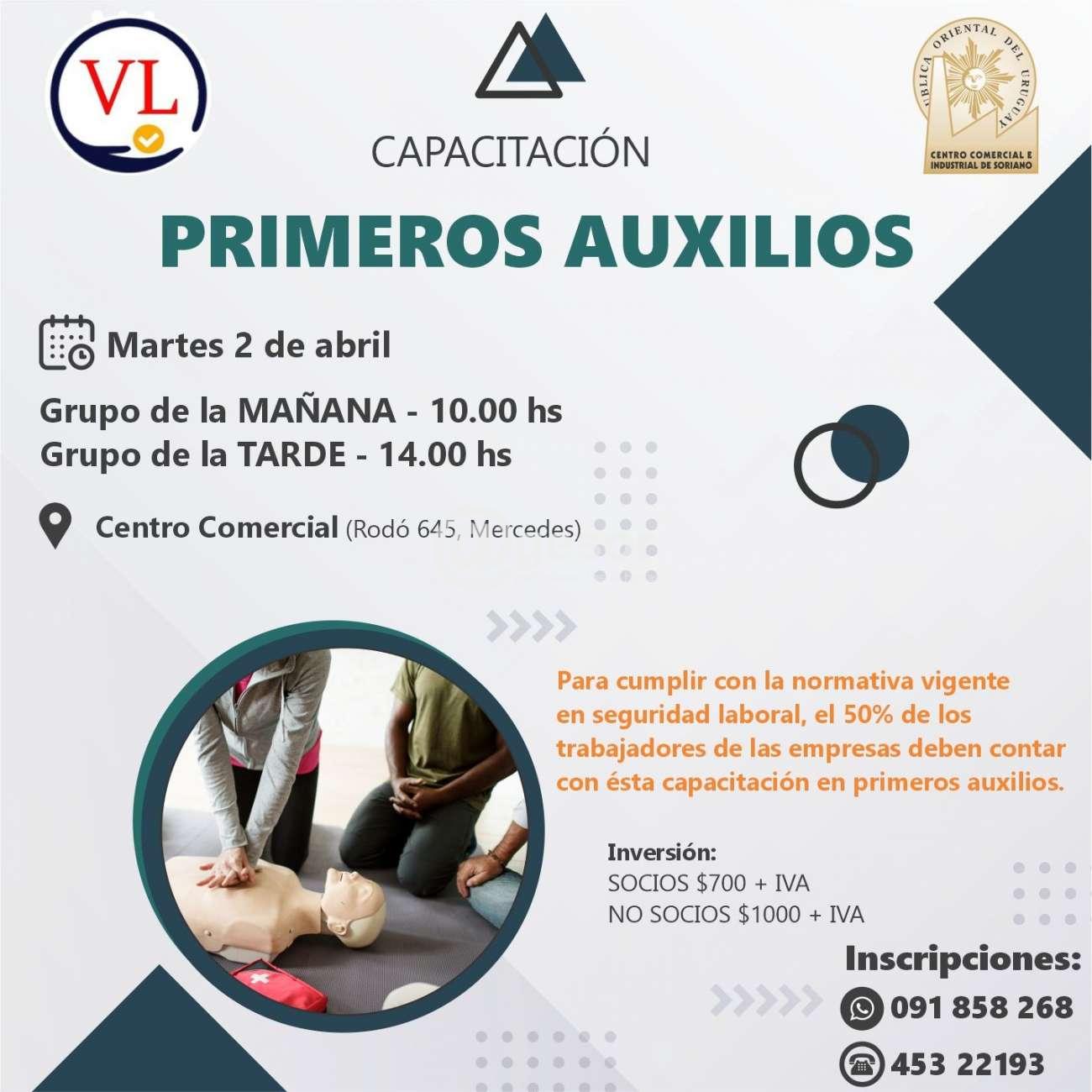 El Centro Comercial e Industrial de Soriano informa que quedan los últimos cupos disponibles para la capacitación de Primeros Auxilios que se realizará en Mercedes el día 2 de abril.