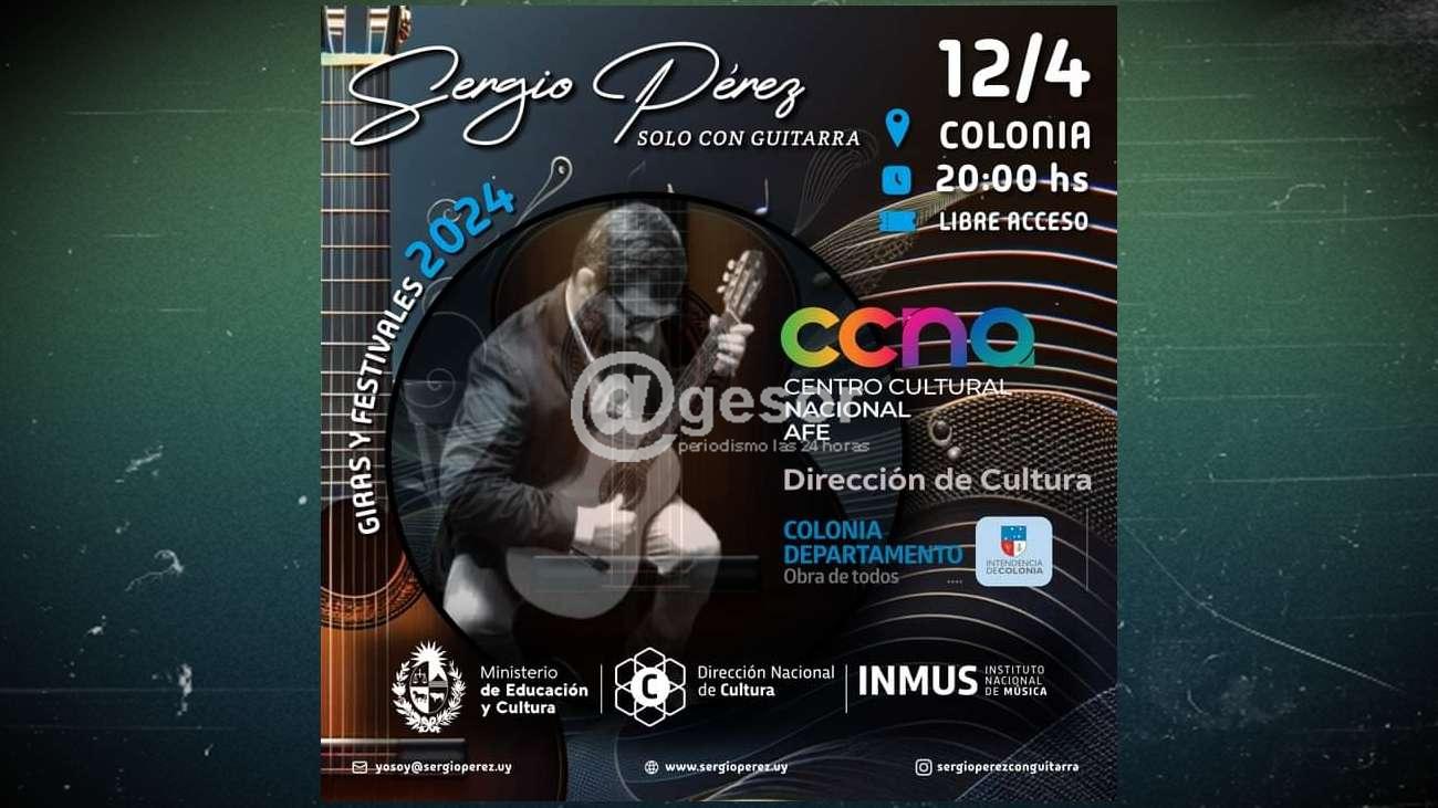 Continuando con su gira, el guitarrista Sergio Pérez se presentará en Colonia del Sacramento. Tal como lo viene haciendo en otros puntos del país, será para presentar su propuesta "Solo con guitarra". Será en el Centro Cultural Nacional AFE (Paseo Eduardo Víctor Haedo entre Miguel Ángel Odriozola y ANP). Un espectáculo apoyado por la Dirección Nacional de Cultura, del MEC, y auspiciado por la Dirección de Cultura de la Intendencia de Colonia.