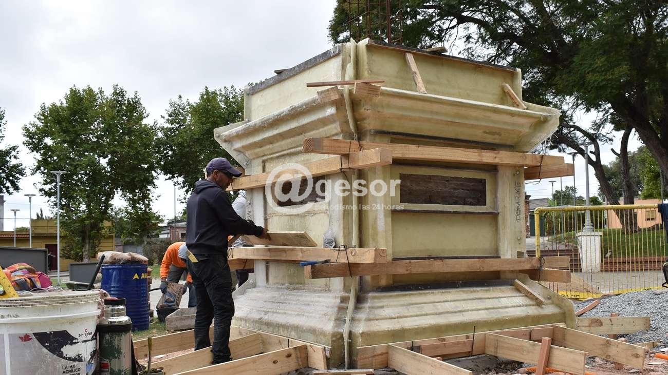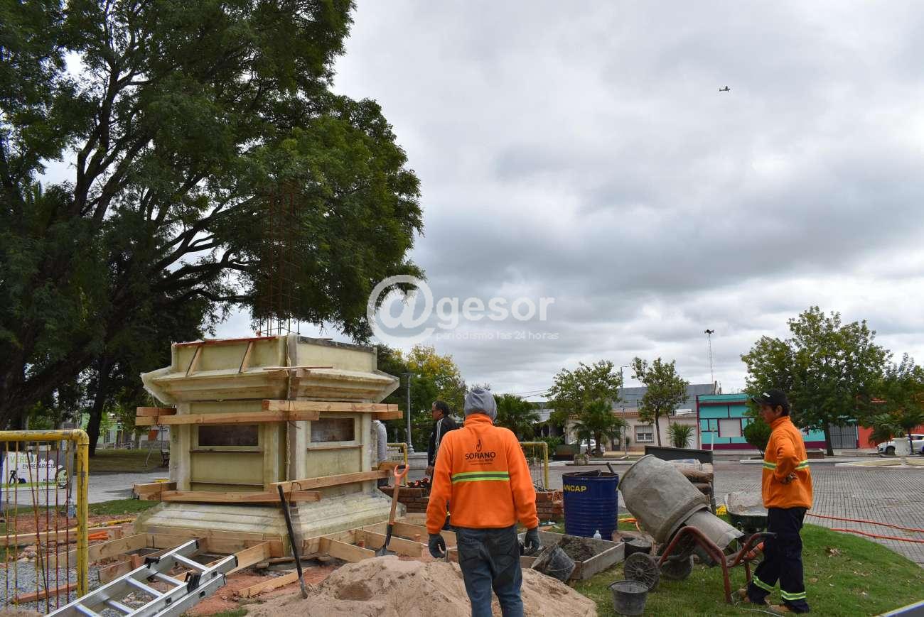 Los trabajos están a cargo de personal del departamento de Arquitectura de la Intendencia, con la orientación del artista Federico Gauthier quien está a cargo de la confección tanto de la columna como de la estatua.