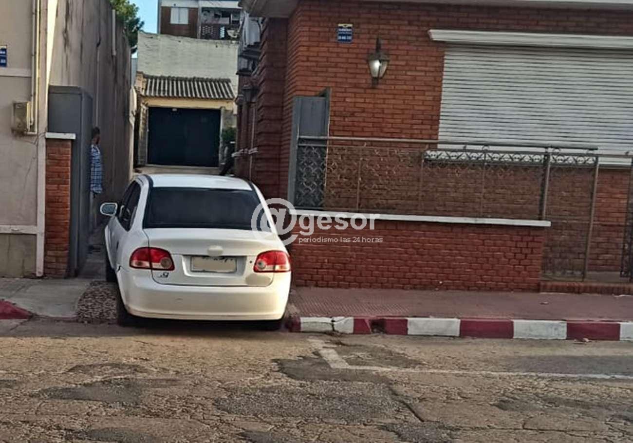 Antes de bajarse del móvil policial comenzó a desacatarse, ofreciendo resistencia para el alojamiento en la celda de seguridad en insultándolo a uno de los policías diciéndole a uno de ellos "gordo chupa pi...". Al ingreso de la dependencia intentó darse un cabezazo contra la pared a lo que los funcionarios lo retiraban antes de que se golpee cayendo al suelo.