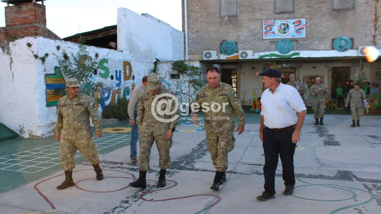 Ambos jerarcas coincidieron en la recorrida que el jefe del Ejército hizo al centro Siempre, que funciona en instalaciones del club Social y Deportivo Asencio.