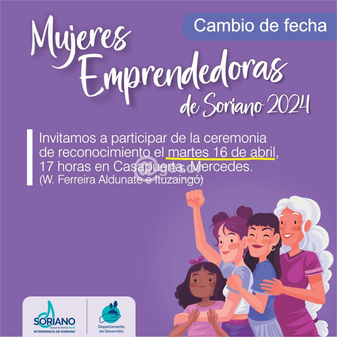 Este martes 16 de abril se realizará la ceremonia de reconocimiento a Mujeres Emprendedoras de Soriano, que tuvo un cambio de fecha.