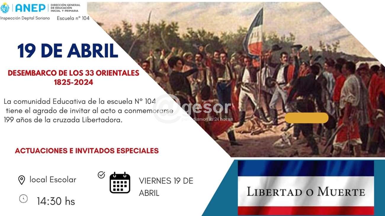 La Escuela Nº 104 de Mercedes invita al acto por el 199 aniversario de la cruzada libertadora. Será el viernes 19 de abril, a las 14,30 horas en el local escolar.