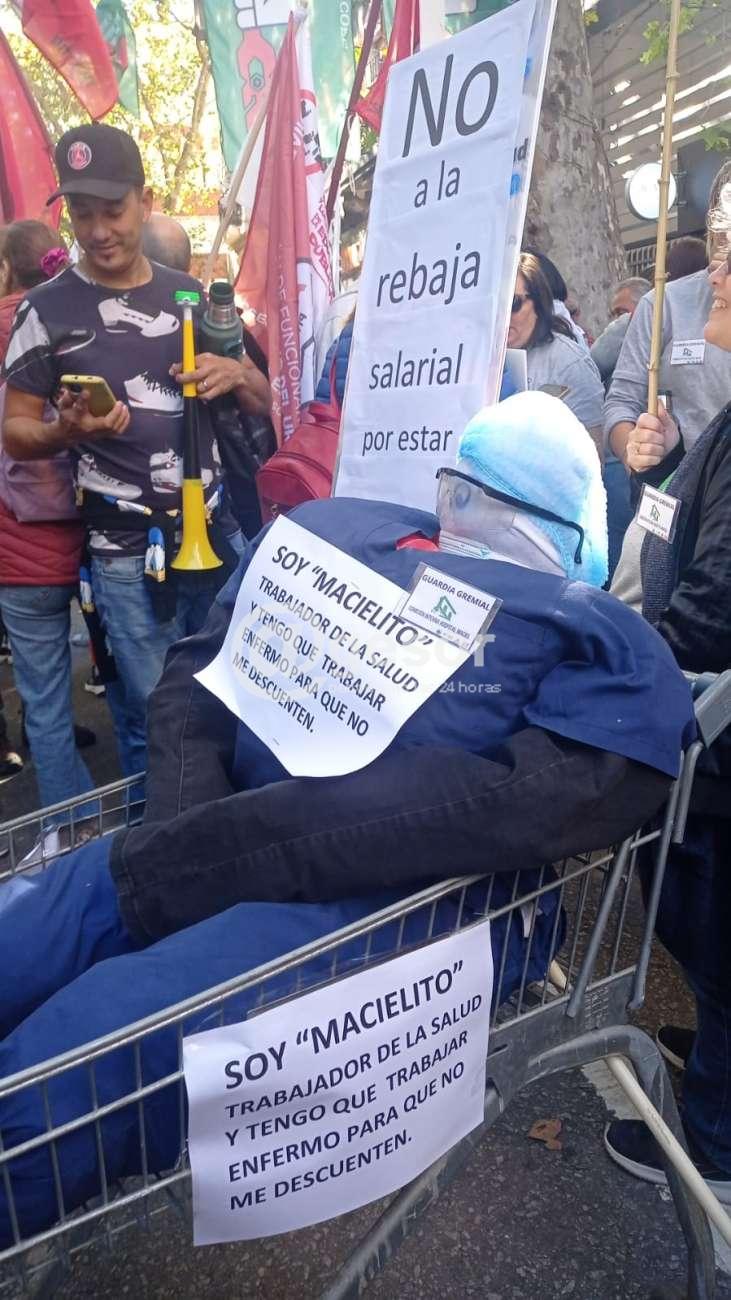 Indicó que en la movilización "hubo representaciones de todos los sindicatos, de todos los gremios, todos compartiendo la idea de efectar la denuncia correspondiente ante los organismos como la OIT ya que no se respetó por parte del Gobierno el derecho a la negociación, se pidió una prórroga para llamar a una reunión y poder llevar a las mesas de negociación los derechos colectivos adquiridos que no se están respetando, el Gobierno hizo caso omiso a esta prórroga, no podemos permitir a los trabajadores públicos y en particular a los de la salud que trabajamos cuidando personas enfermas, no tenemos la posibilidad de enfermarnos porque nos tocan el bolsillo y a la vez seguimos perdiendo salarialmente".