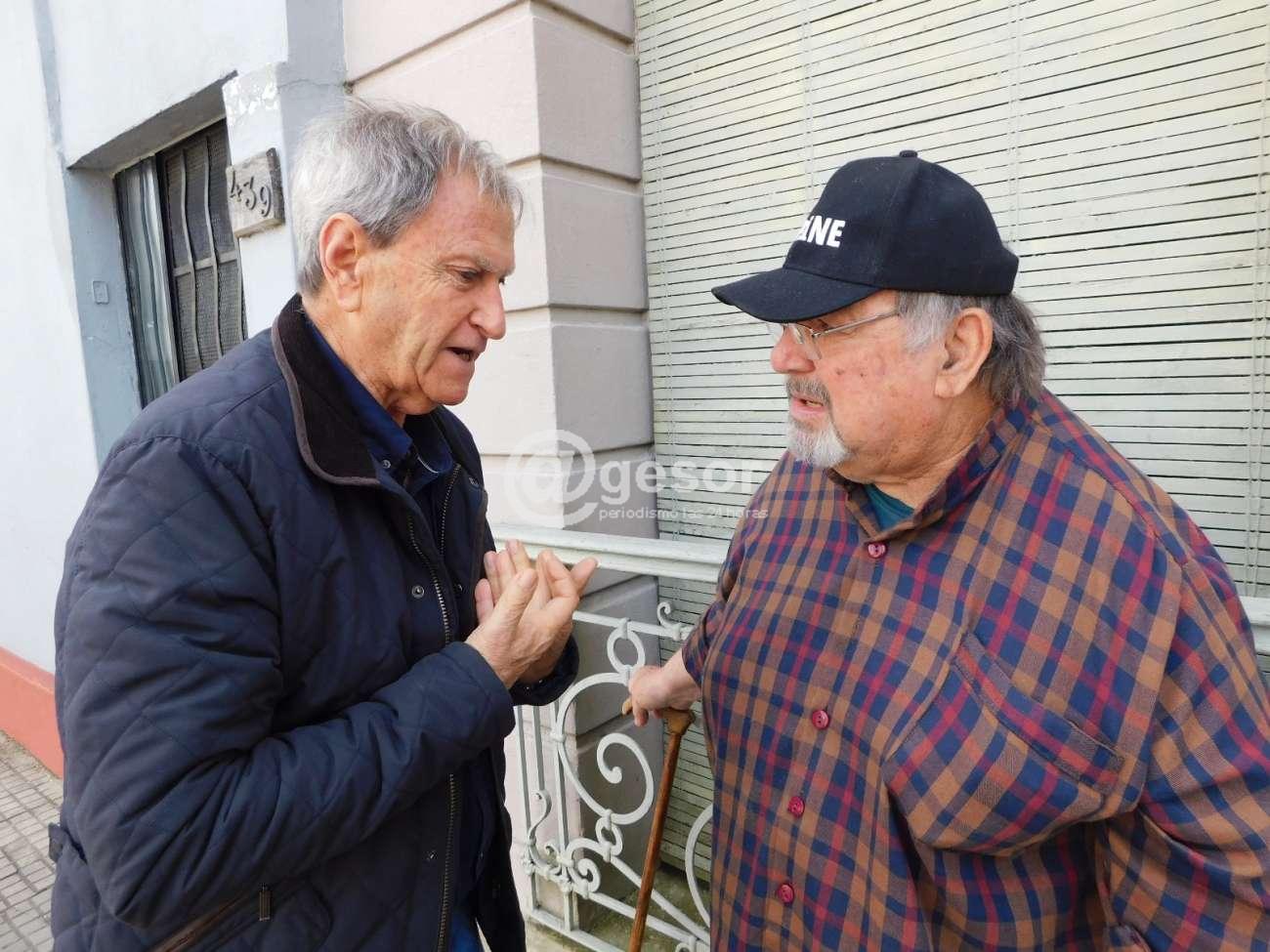 Fotografía: Gonzalo Novales dialogando con Zoilo Viera tras el acto del 1º de Mayo