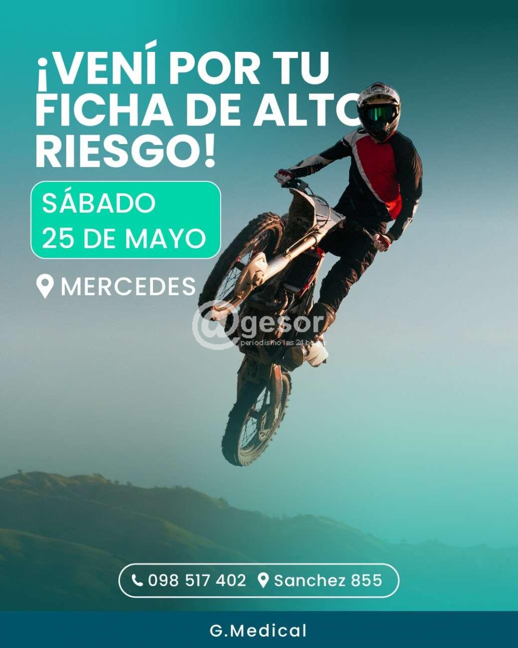 Este sábado 25 de mayo estaremos realizando en Mercedes, la ficha para deportes de alto riesgo, como por ejemplo Motociclismo, Kartin y Automovilismo, entre otros.