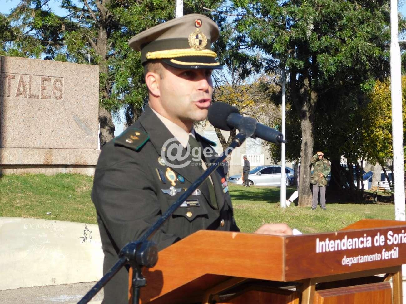 El militar señaló, "ese día, y bajo el fuego de los fusiles con su bayoneta calada y la carga de la caballería oriental, así hacia el enemigo, nacía el Ejército Nacional, nació de la conjunción de aquellas personas que estaban dispuestos a dar lo más preciado que tienen, la vida, en pos de la patria misma, siendo su primer jefe el General José Artigas. Ese día, de cierta forma también podemos decir que nació la patria misma. Día que recordamos a todos nuestros camaradas de armas que sirvieron en el ejército, desde los que estuvieron sudando y sangrando en la primer carga en los campos de Las Piedras junto al General, hasta aquellos que hoy vestimos con orgullo nuestro uniforme como soldado oriental, cumpliendo con nuestro deber de soldados, recordando con profundo sentimiento y respecto a nuestros hombres caídos en defensa de la patria".
