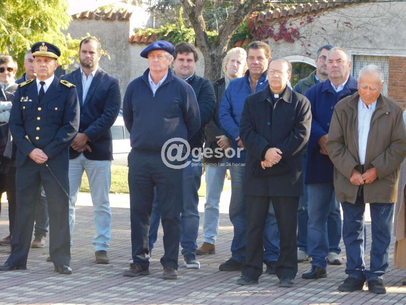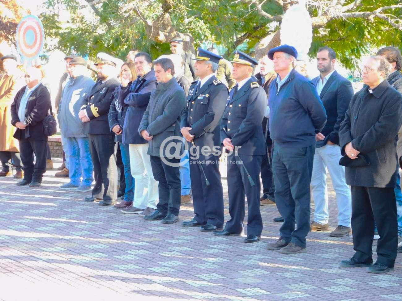 Intendente de Soriano Guillermo Besozzi, Presidente de la Junta Departamental de Soriano Gonzalo Novales, Diputados María Fajardo, Enzo Malán, Martín Melazzi, Ediles, Jefe de Policía Jorge Falero junto a su Comando y jefes de las diferentes unidades y abanderados, 2º Jefe del Batallón Asencio de Infantería Nª 5, abanderados y efectivos de la reserva del Ejército, Prefecto del Puerto de Mercedes, abanderados, además del Obispo Diocesano, Presidente de la Asociación Patriótica y demás integrantes, Asociación de Retirados Militares, Dirección y personal junto a abanderados de la Escuela Técnica Washington Lockhart, grupo de danzas, público en general.