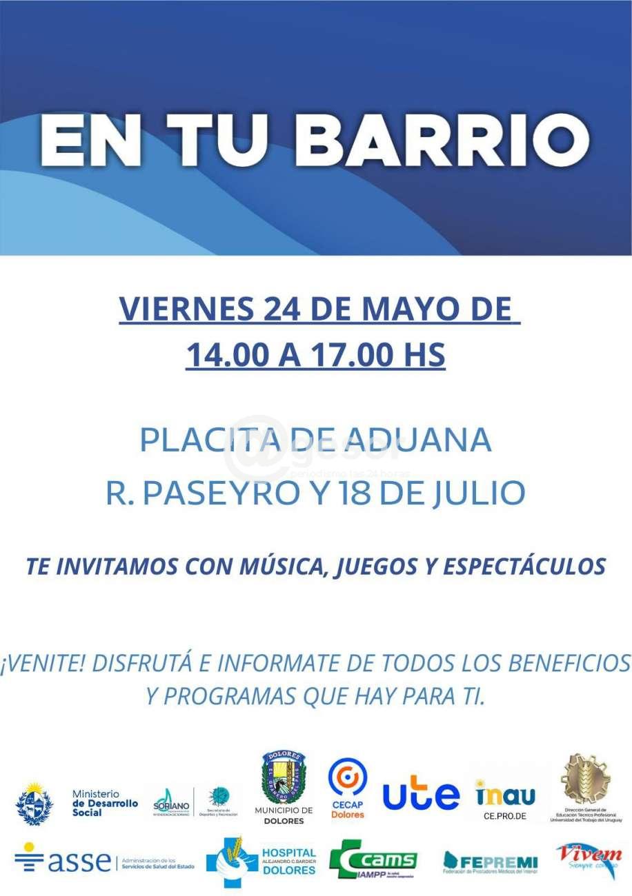 Este viernes 24 de mayo el programa En tu Barrio se lleva a cabo en placita de Aduana en R. Paseyro y 18 de Julio en Dolores.