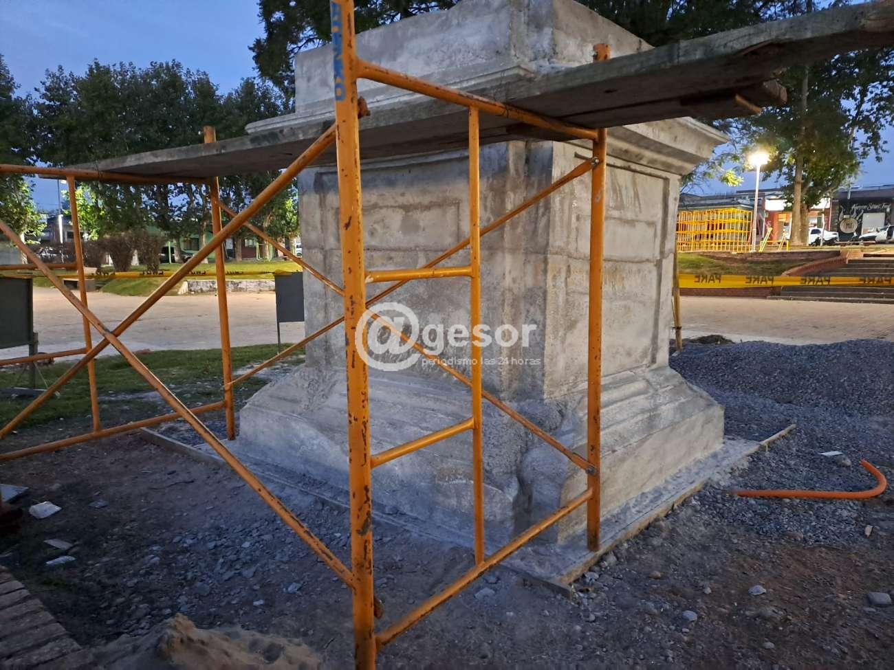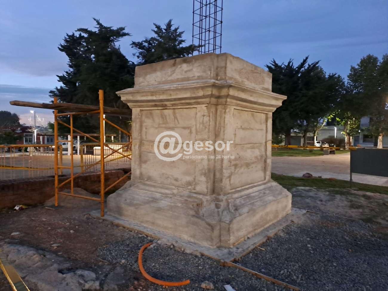 Los trabajos en el sector central de plaza “Rivera” de la ciudad de Mercedes, los realiza personal municipal bajo la supervisión del artista Federico Gauthier quien está a cargo de la confección tanto de la columna como de la estatua.
