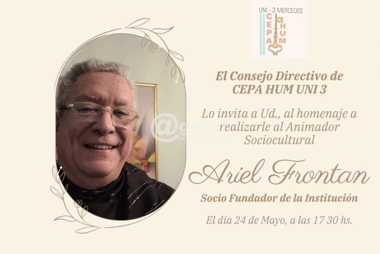 El Consejo Directivo de CEPA HUM - UNI3 Mercedes, está invitando al homenaje que realiza al Animador Sociocultural, a su vez fundador de la institución, Ariel Frontán recientemente fallecido.