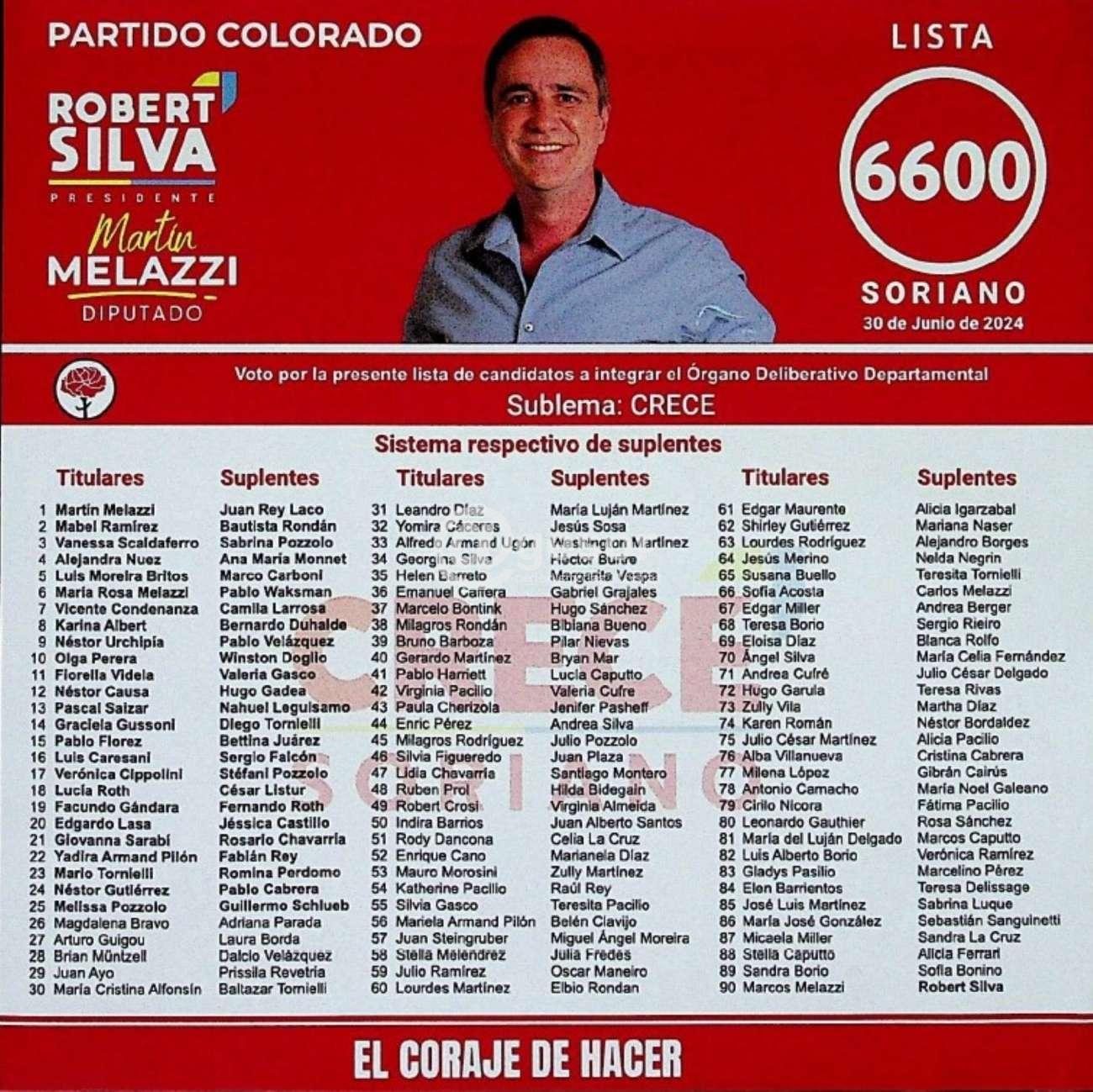 Martín Melazzi en lo departamental y su apoyo a la precandidatura presidencial de Robert Silva en las Listas 6600 y 6 respectivamente son opciones para los colorados.