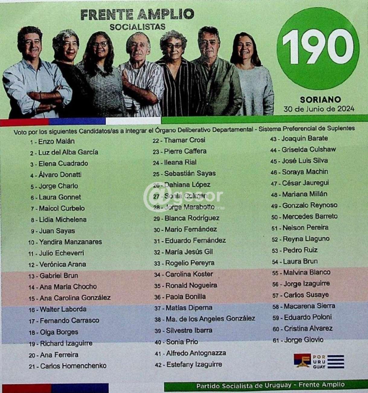 En lo departamental la hoja 190 está encabezada por el actual diputado Enzo Malán con representantes de diferentes puntos de Soriano.