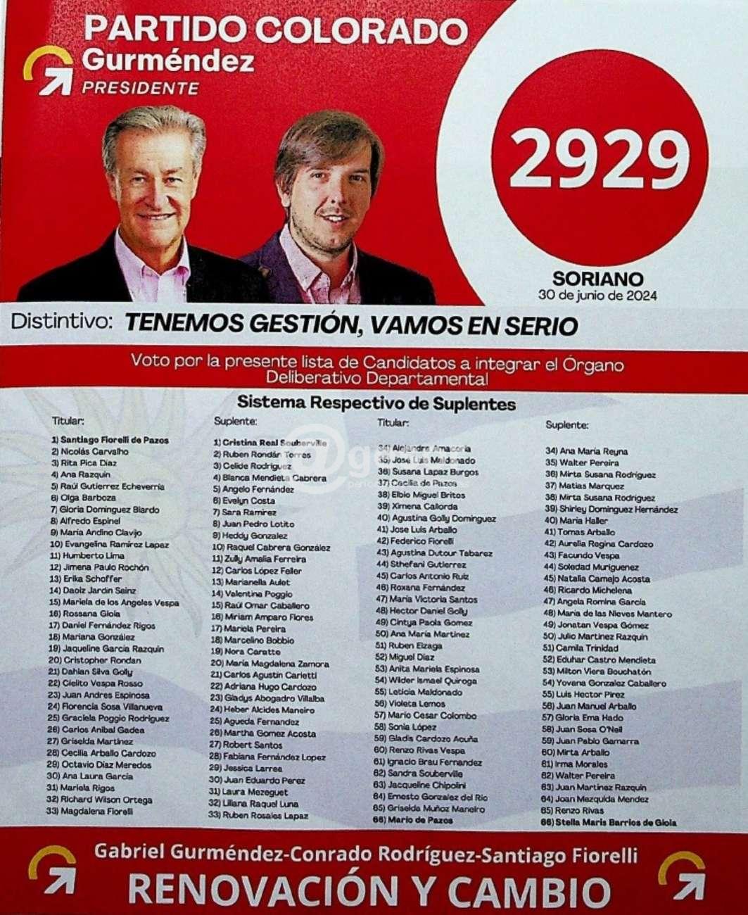 En lo departamental la hoja 2929 de cara a las Elecciones Internas del 30 de junio está encabezada por el actual Edil colorado, acompañado de Nicolás Carvalho.