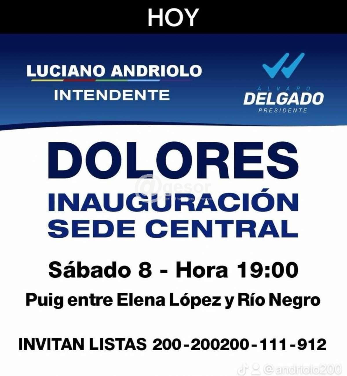 Hoy sábado 8 de junio con Luciano Andriolo Intendente y Alvaro Delgado Presidente, Listas 200 y 200200 inauguran sede central en Dolores
