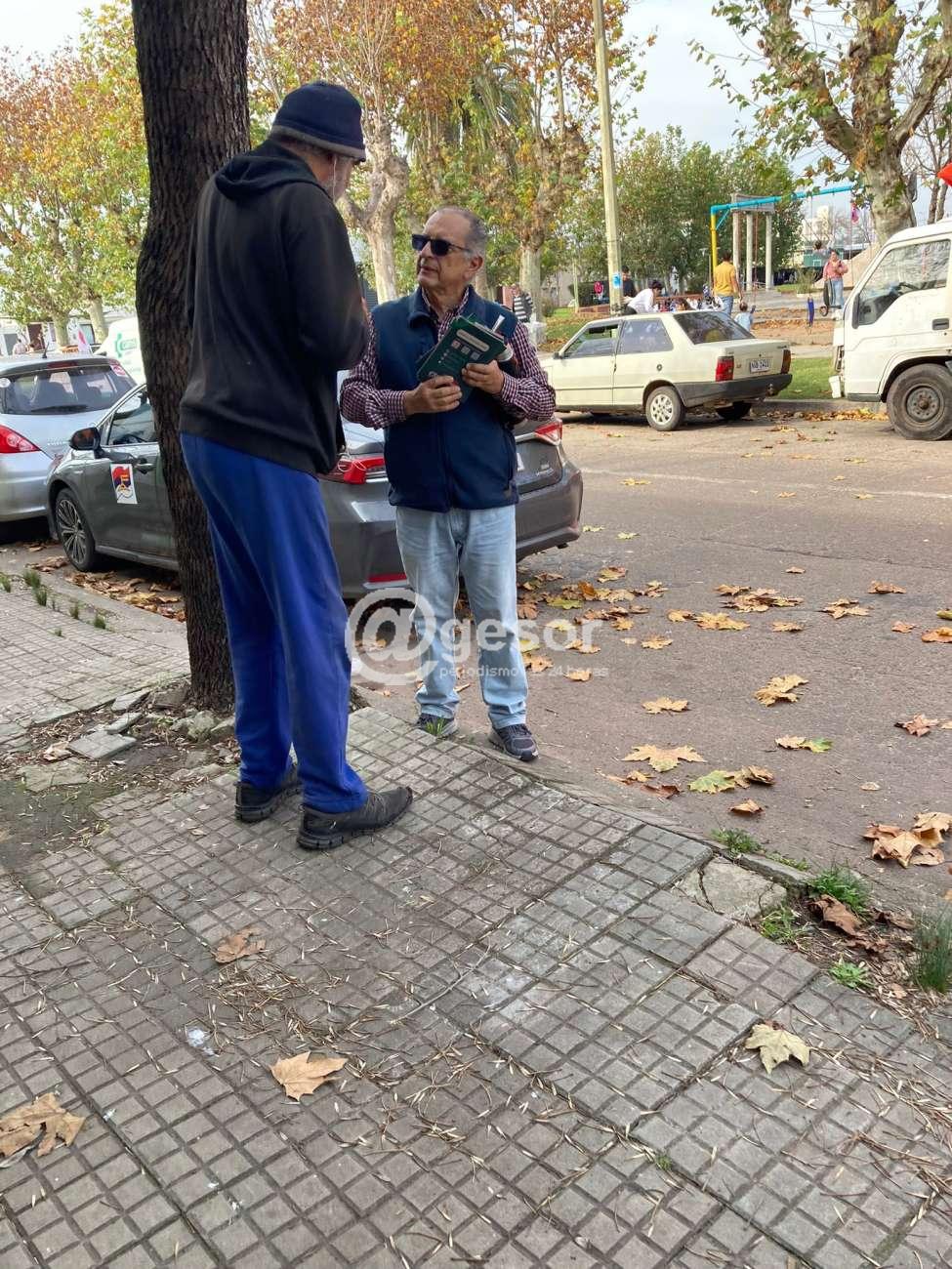 Julio y la barra del Espacio Socialdemócrata Amplio hoy en plaza Lavalleja.