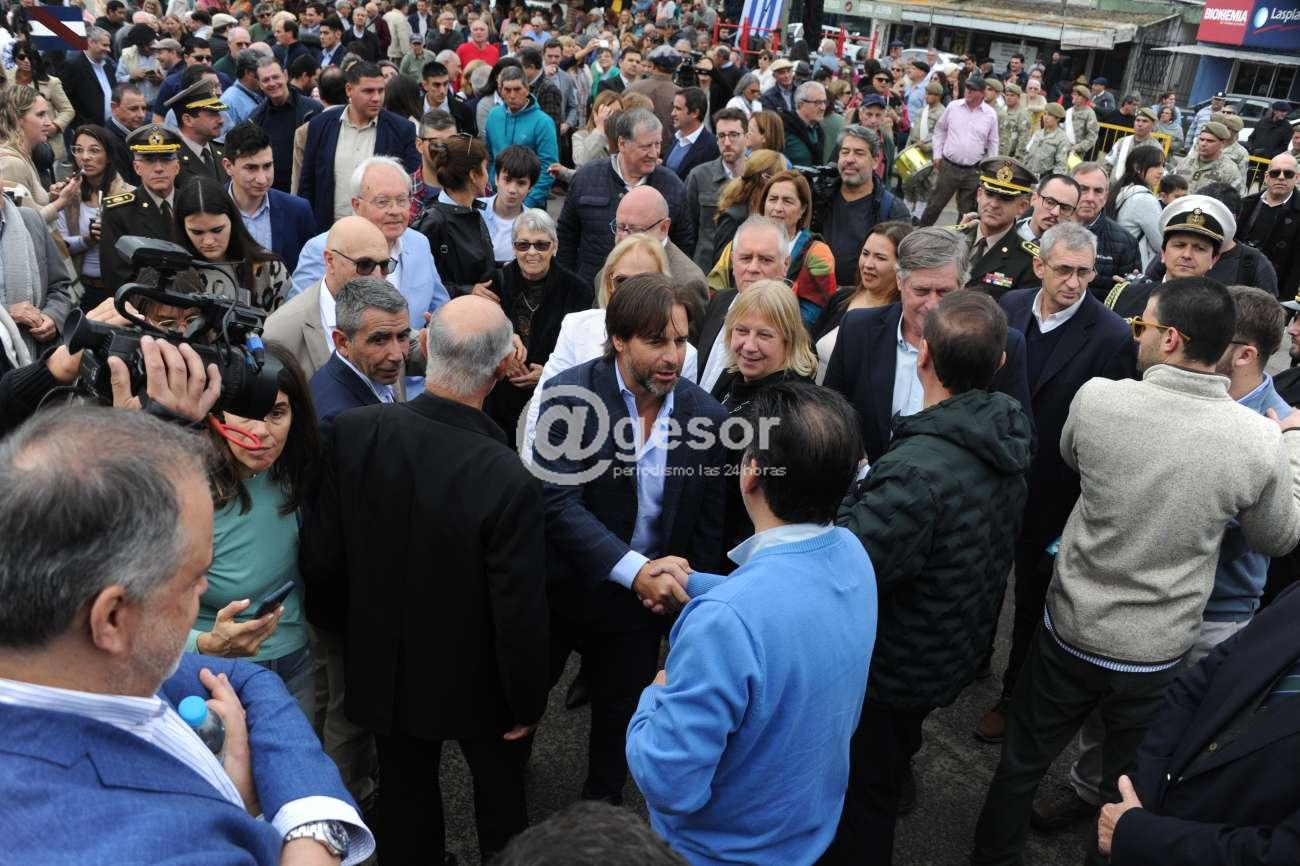 El acto incluyó una suelta de palomas. Además, la comisión organizadora le entregó al presidente Lacalle Pou obras de arte en agradecimiento por su presencia.