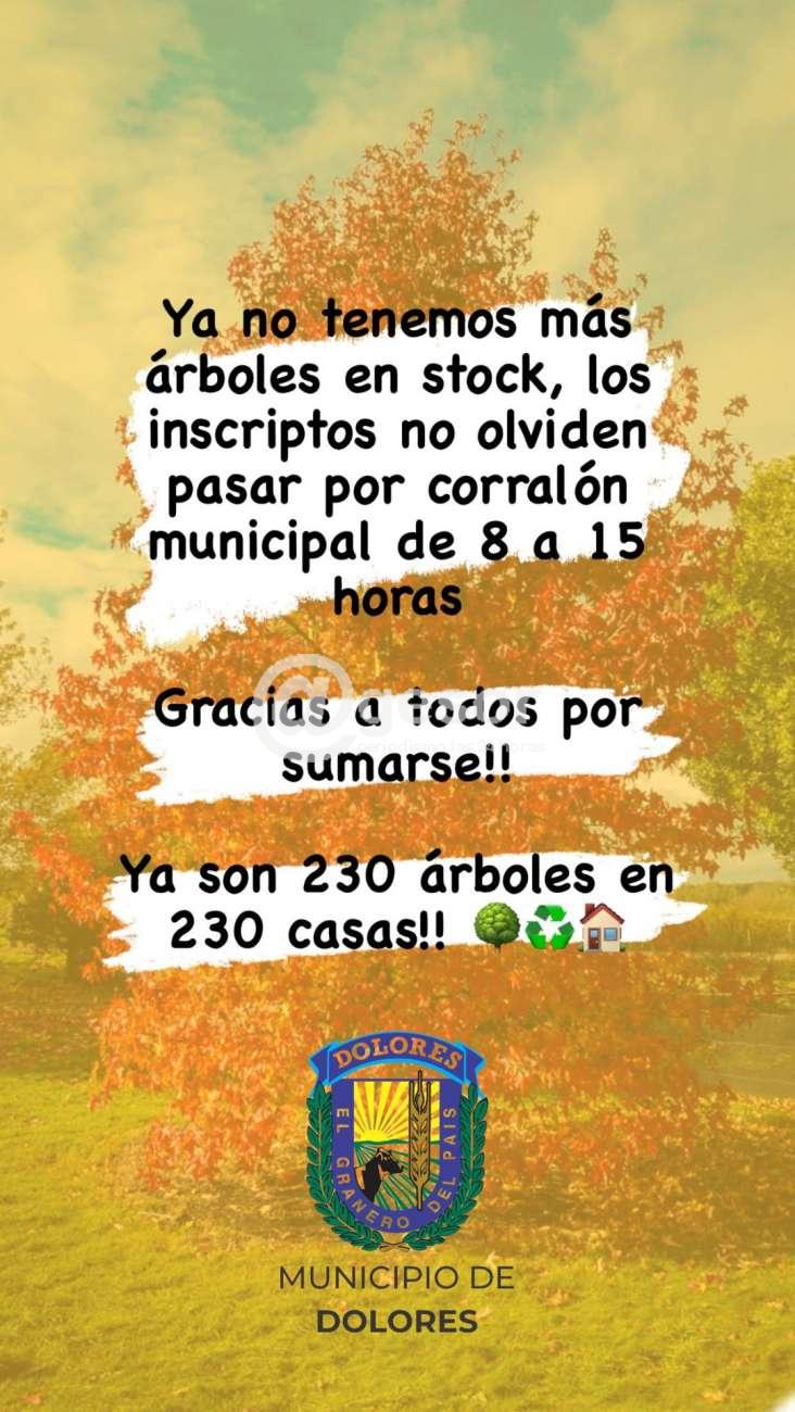 Desde el Municipio de Dolores se informa: Ya no tenemos más árboles en stock, los inscriptos no olviden pasar por el corralón municipal de 8.00 a 15.00 horas.