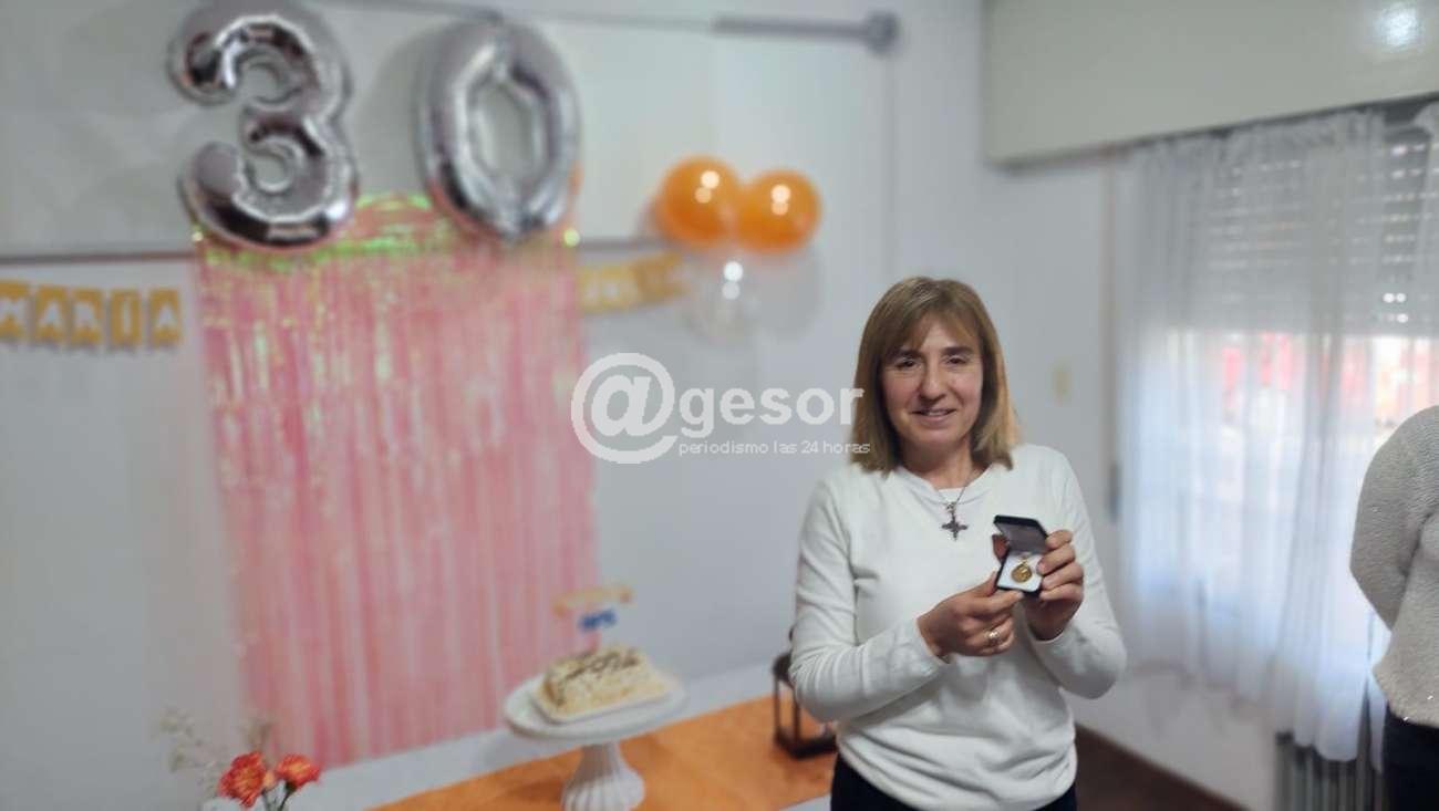 En la actividad cumplida en la sede de Mercedes una de las homenajeadas por María Julia Gavarone, quien cumplió 30 años de trabajo en BPS.