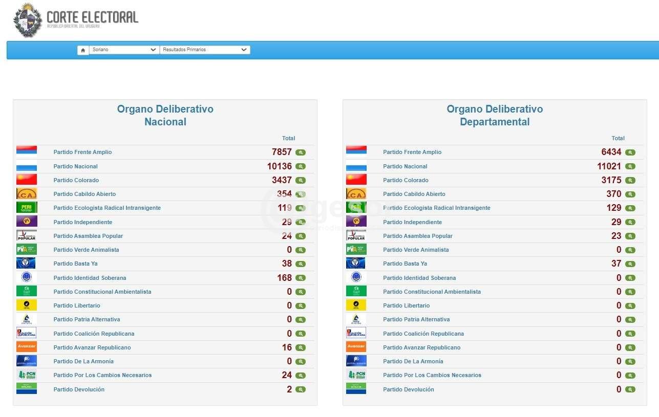 En Soriano, el Partido Nacional fue el más votado. Nuevamente se dio que a nivel departamental cosechó más votos que en lo nacional, mientras que el Frente Amplio y el Partido Colorado bajaron la votación de lo nacional a lo departamental
