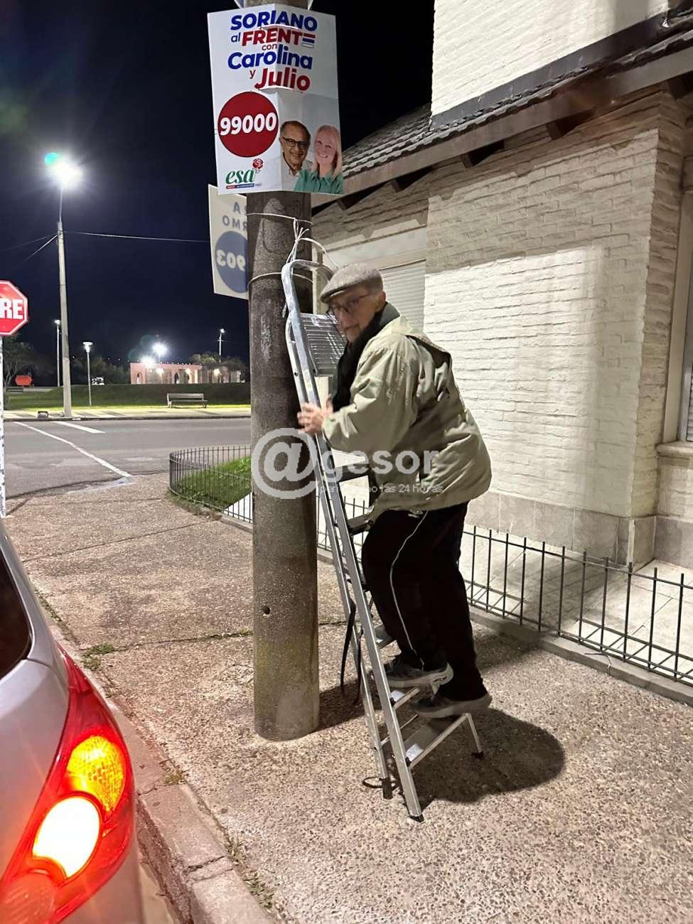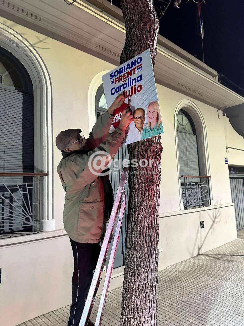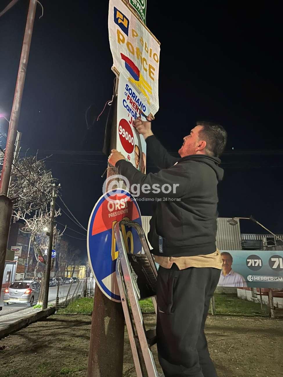 En la noche de este lunes, Julio Guastavino junto a Sebastián Barruta, parte de su equipo, salieron a bajar cartelería utilizada durante la campaña electoral que finalizó el pasado domingo en las Elecciones Internas, @gesor que los vio en un momento de su tarea, dialogó con Julio quien señaló "es muy importante cuanto antes cuidar la “polución visual” en las ciudades”.