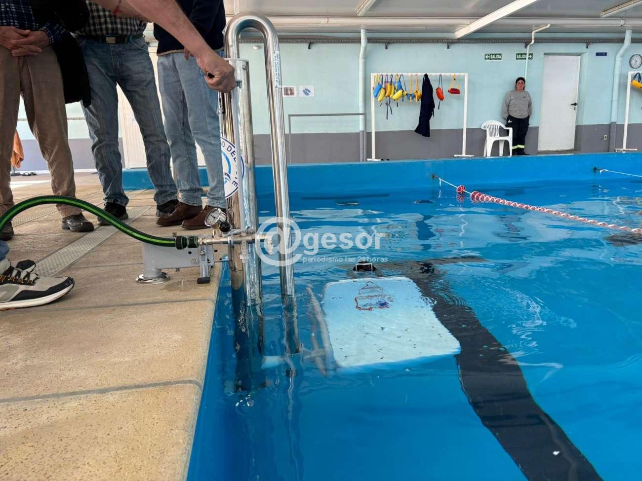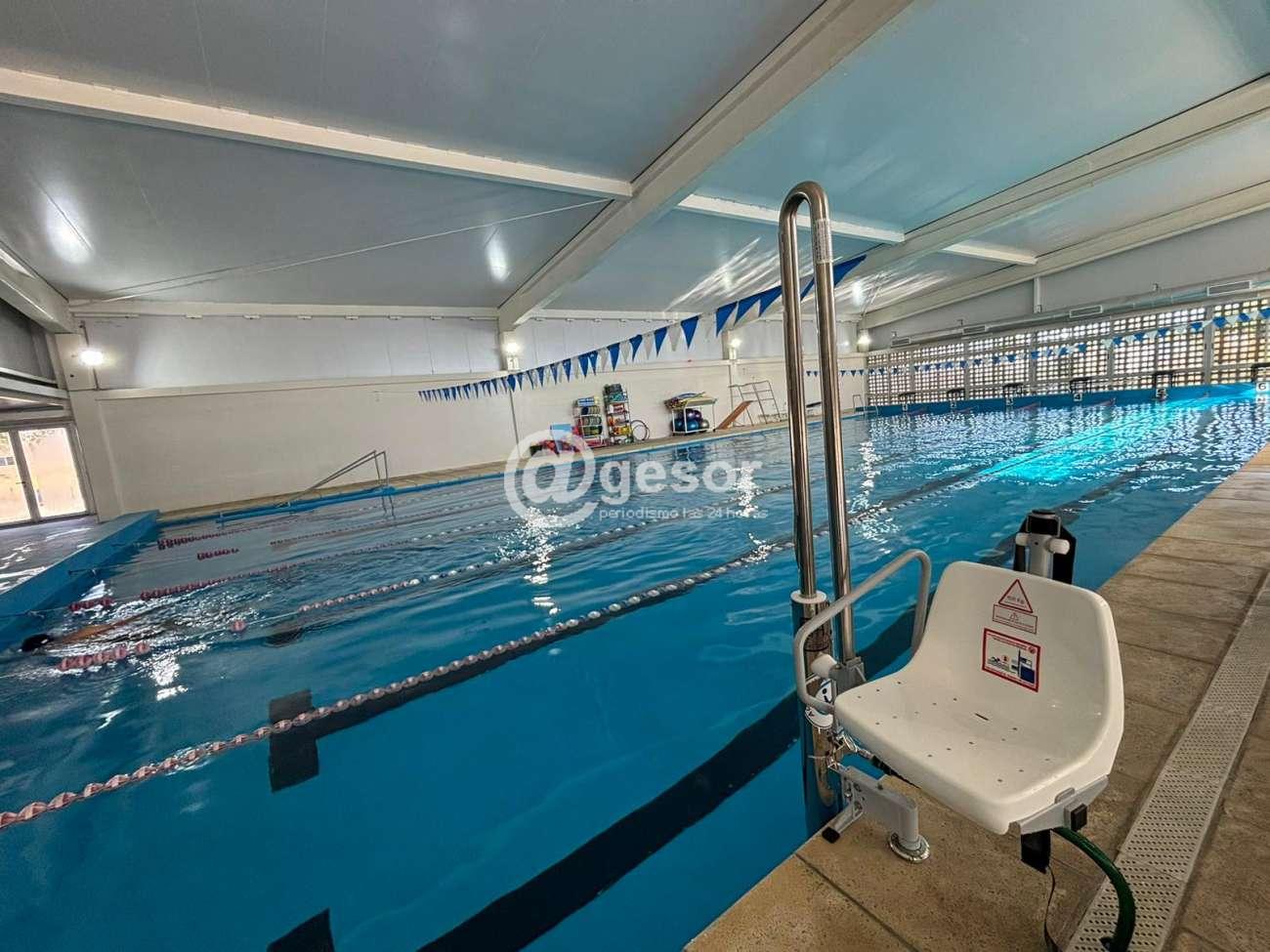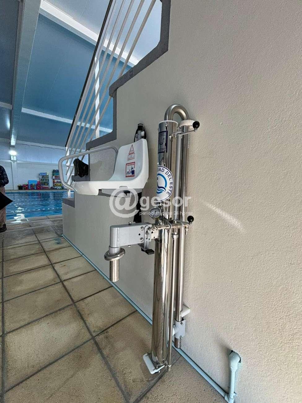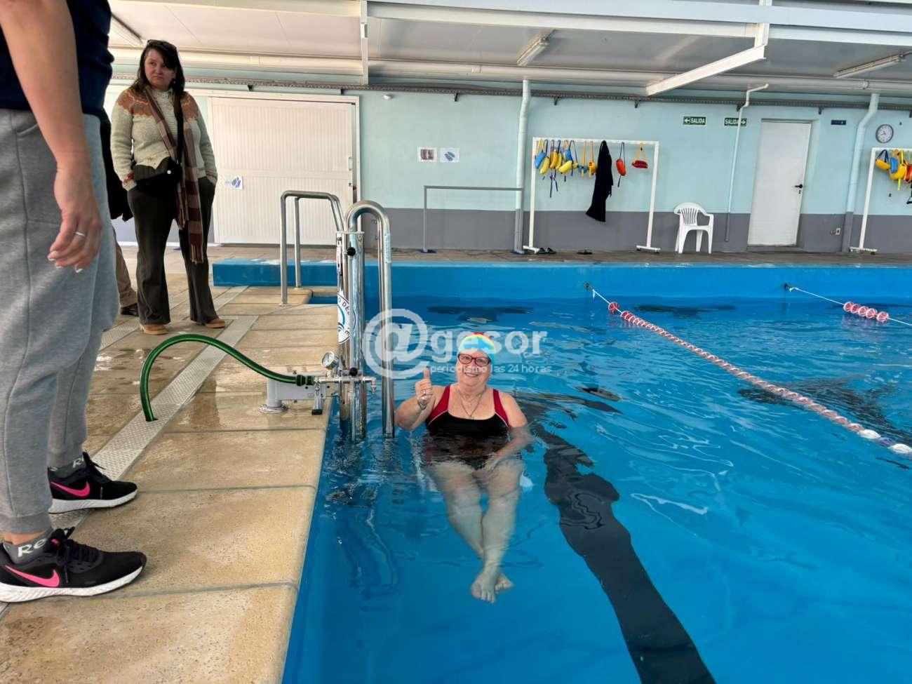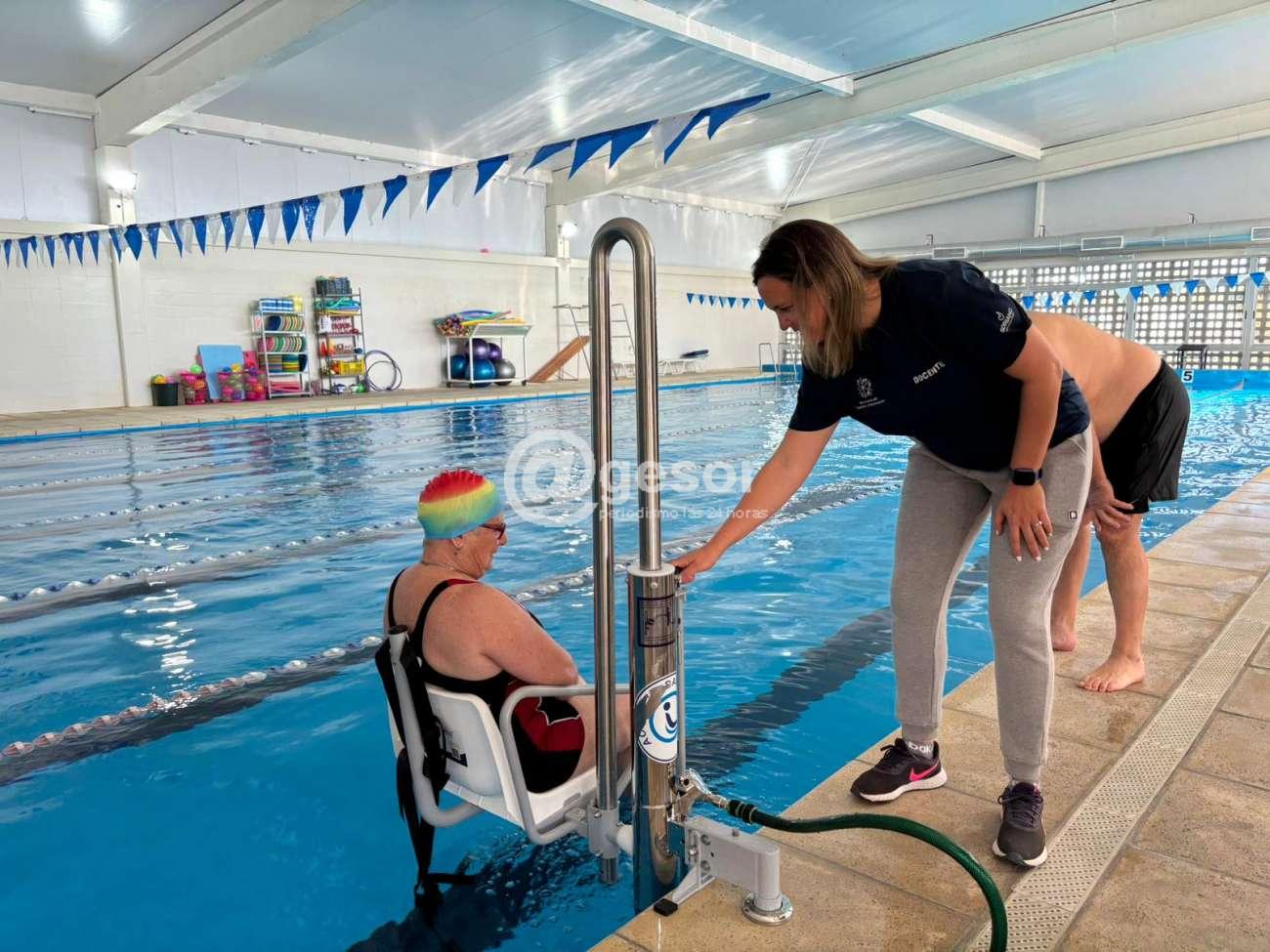 En la piscina municipal de Dolores, se colocó una silla hidráulica para personas con discapacidad que permite el ingreso y salida del agua de manera segura y cómoda.
