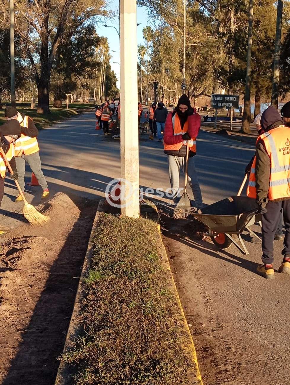 Luego de intervenir en la rambla, ahora las tareas se van extendiendo hacia el interior del parque "Guernika", donde se trabaja por parte de distintas áreas der la comuna, así como con beneficiarios del programa "Oportunidad Laboral".