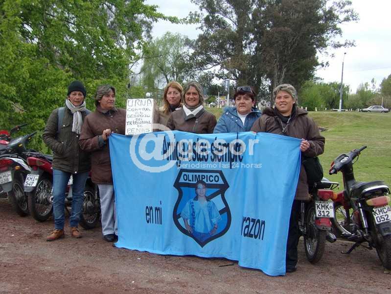 Las amigas y simpatizantes de la recordada joven, ubicadas este domingo, en el acceso al parque Bristol al tiempo que recaudaban la colaboración, como lo viene haciendo desde la novena fecha del torneo Apertura en los escenarios donde juega Olímpico, -por la pena que rige y que hemos informado con anterioridad- exhibían una bandera con la imagen de la extinta Cecilia Pereira”.