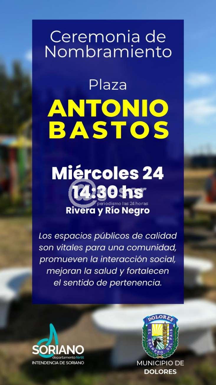 Este miércoles 24 en Dolores, ceremonia de nombramiento de plaza Antonio Bastos.