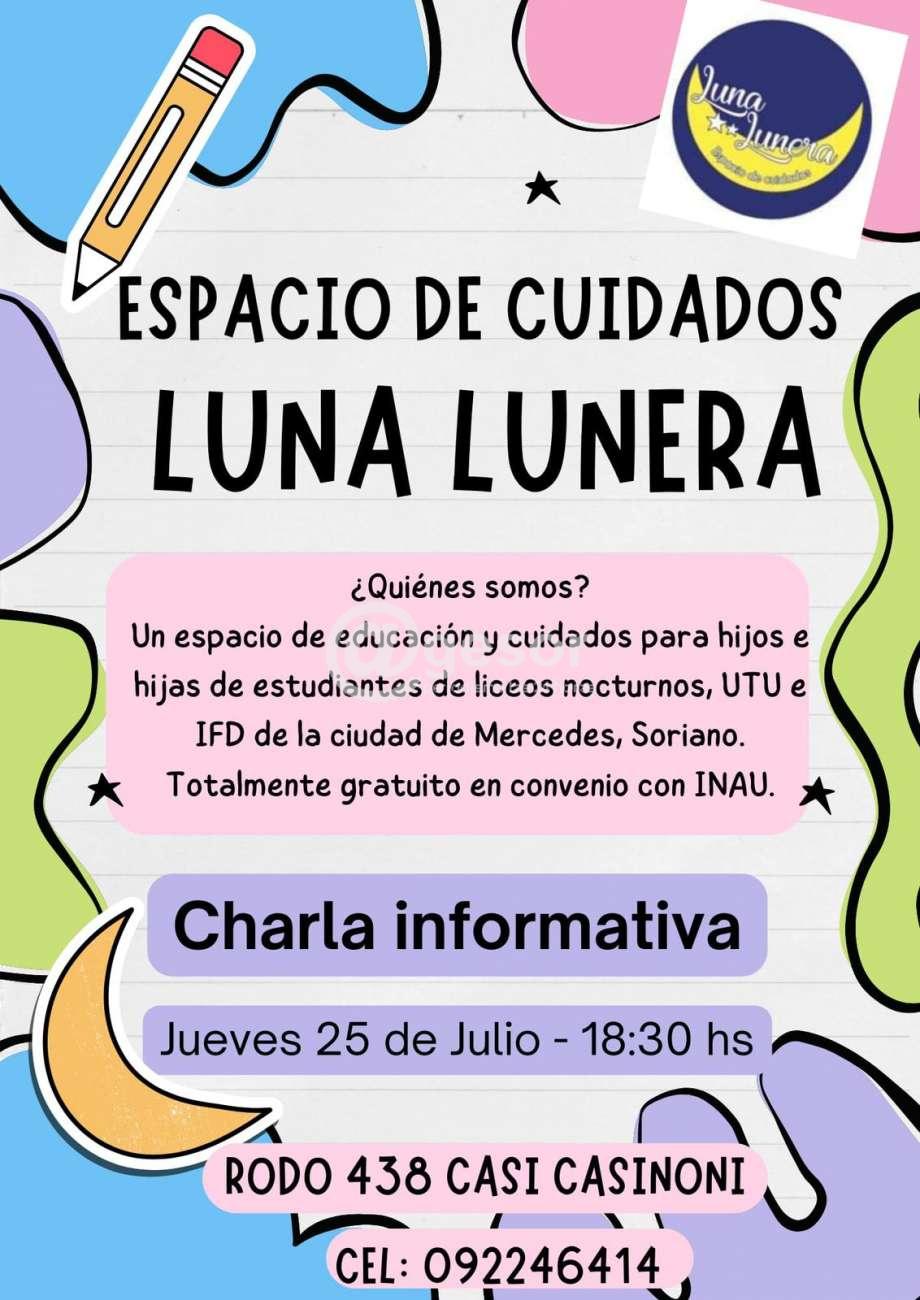 Este jueves 25 de julio a las 18.30 horas en Rodó 438 casi Cassinoni, se realiza charla informativa del Espacio de Cuidados Luna Lunera.
