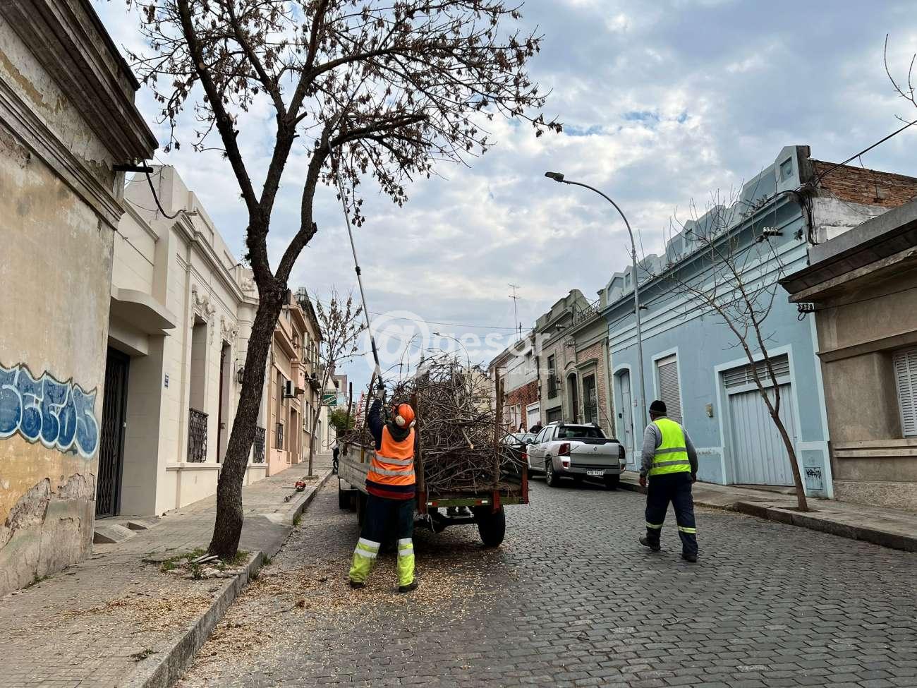 El trabajo de poda se realiza en varios puntos de la ciudad de Mercedes, donde se ha efectuado la poda de limpieza de ramas bajas y otras que puedan estar afectando el cableado o las fachadas de algunas viviendas.