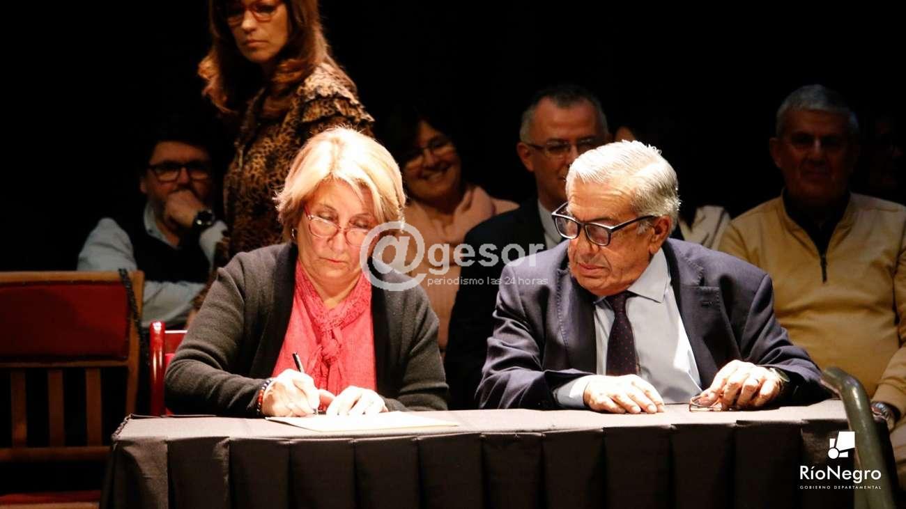 Seguidamente, la Escribana de la Intendencia de Río Negro, Cecilia Di Pascua, procedió con la firma de traspaso de mando, entre el Dr. Omar Lafluf Hebeich y la Sra. Griselda Crevoisier Martínez.