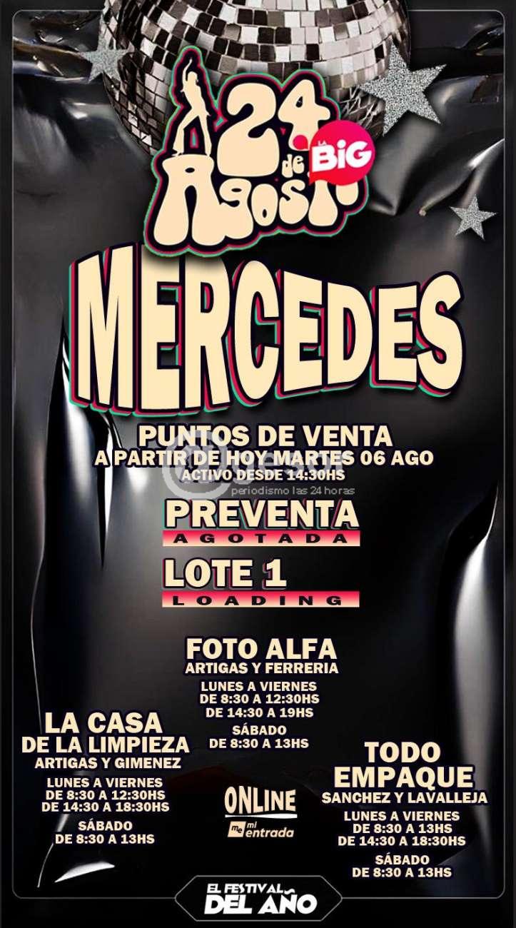 Con PREVENTA AGOTADA, este 24 de agosto para LA BIG, se puso a la venta el LOTE 1 que está activo desde este martes 6 a las 14.30 horas en varios puntos de Mercedes.