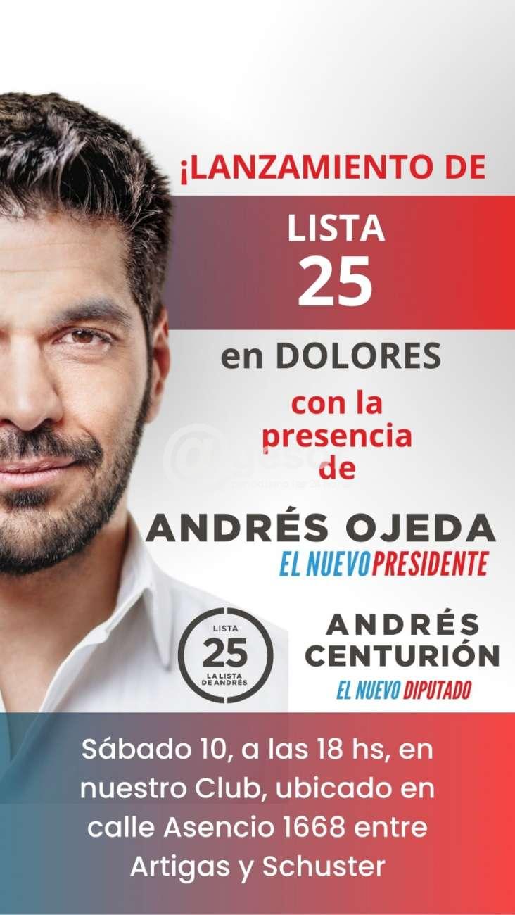 El candidato presidencial colorado Andrés Ojeda estará en Dolores para la presentación de la lista 25 que promueve la canidatura de Andrés Centurión a la diputación.