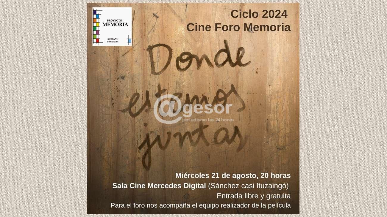 Continúa el ciclo de Cine Foro, organizado por la Comisión Memoria, Justicia y contra la Impunidad del Soriano. El miércoles 21 de agosto en Cine Mercedes Digital (Sánchez entre Ituzaingó y Artigas), con entrada libre y gratuita se proyectará la película “Donde estemos juntas”. Tras la proyección de la película se realizará un foro del que participará el equipo realizados .