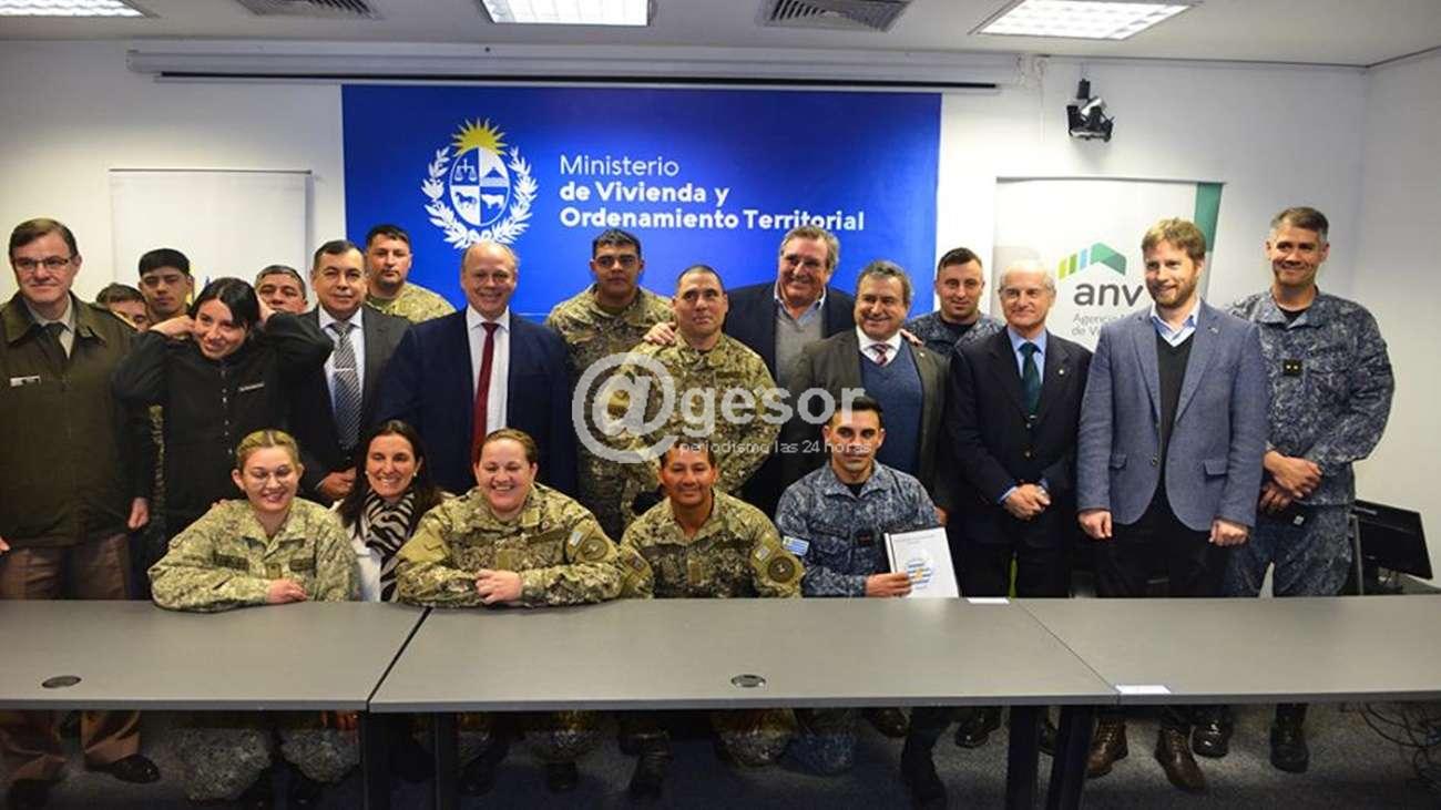 La actividad se desarrolló este martes 13, en el salón de actos del Ministerio de Vivienda y Ordenamiento Territorial (MVOT). Estuvieron presentes el titular de esa cartera Raúl Lozano, y su par de Defensa Nacional, Armando Castaingdebat. Fueron acompañados por el subsecretario del MVOT, Tabaré Hackenbruch; el presidente de la Agencia Nacional de Vivienda, Klaus Mill, y la directora nacional de Integración Social y Urbana, Florencia Arbeleche.
