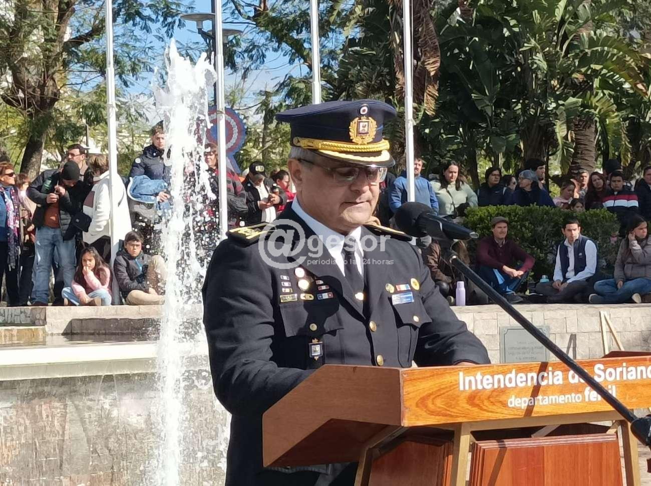 La oratoria estuvo a cargo del Sub Jefe de Policía de Soriano, Crio. May. Luis Astigarraga, que señaló "hoy celebramos, con un profundo sentimiento patriótico 199 años de otro hito histórico en el largo camino de la independencia.