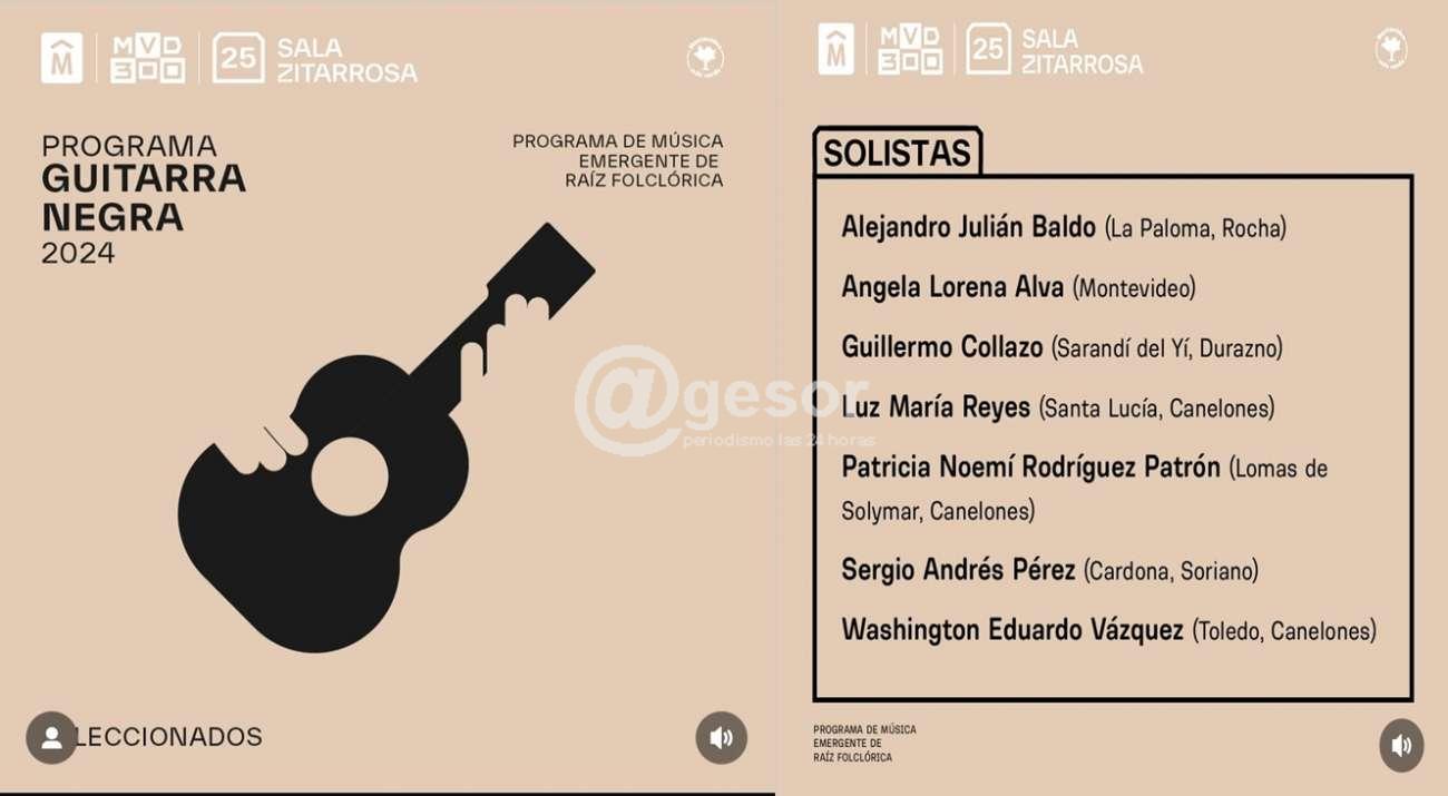 El Programa Guitarra Negra, que en esta edición pone el foco en la música de raíz folclórica, ofrece a los seleccionados la oportunidad de participar en talleres de formación virtual a cargo de referentes del ámbito musical uruguayo.