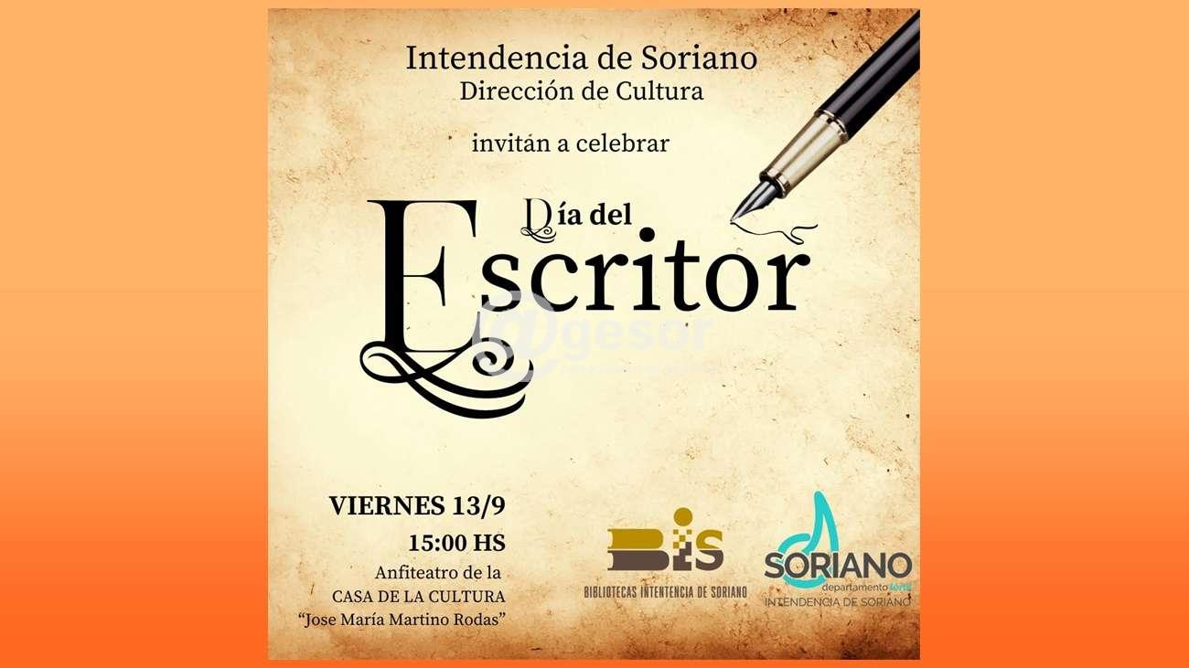 La Dirección de Cultura de la Intendencia de Soriano invita a la celebración del Día del Escritor, que se llevará a cabo el próximo viernes 13 de setiembre, a las 15:00 horas, en el Anfiteatro de la Casa de la Cultura "José María Martino Rodas", ubicada en las calles Wilson Ferreira Aldunate e Ituzaingó, en Mercedes.