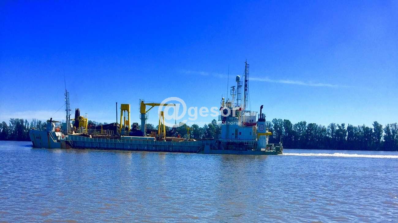La draga finaliza las operaciones en la zona del paso Arroyo Negro (Km 186)”, y desde allí, continuará dragando los pasos de navegación hacia aguas abajo.