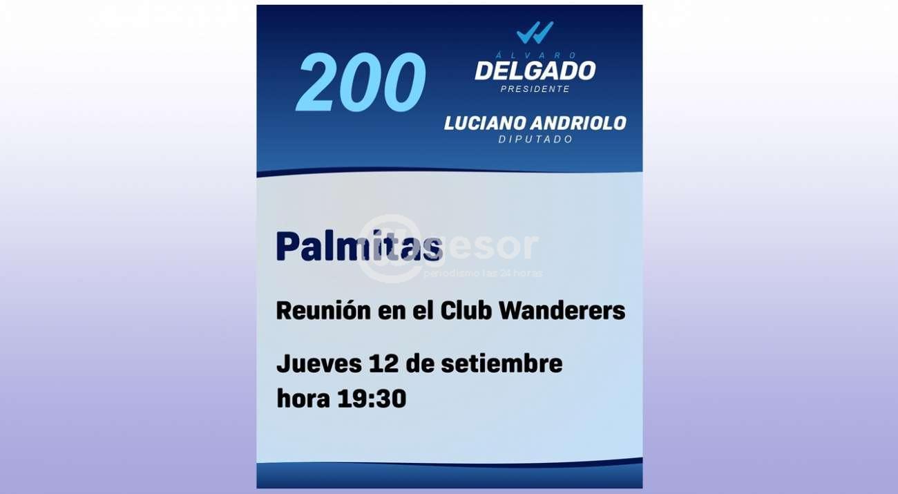 Este jueves en el Club Wanderers de Palmitas, Luciano Andriolo, candidato a Diputado por la lista 200 del Partido Nacional encabezarà una reunión con vecinos de la localidad. Será a partir de las 19,30 horas.