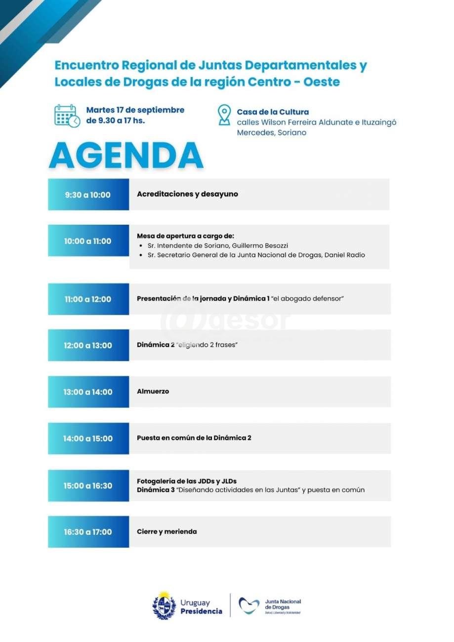 Este martes en Casa de la Cultura se realiza jornada de trabajo de Juntas departamentales y locales de drogas. Participaran los departamentos de Río Negro, Flores, Durazno, Florida, San José y Colonia. La Junta Departamental de Drogas de Soriano será la anfitriona.
