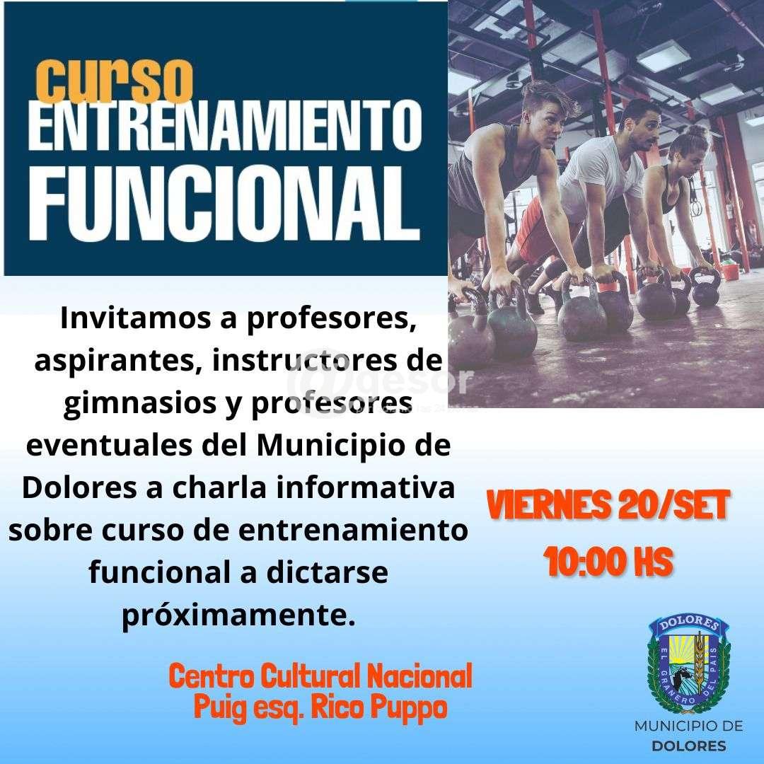 Desde el Municipio de Dolores está invitándose a paticipar del curso de Entrenammiento Funcional a realizarse este viernes 20 de setiembre a las 10.00 horas en el Centro Cultural Nacional de Dolores en Puig esq. Rico Puppo.