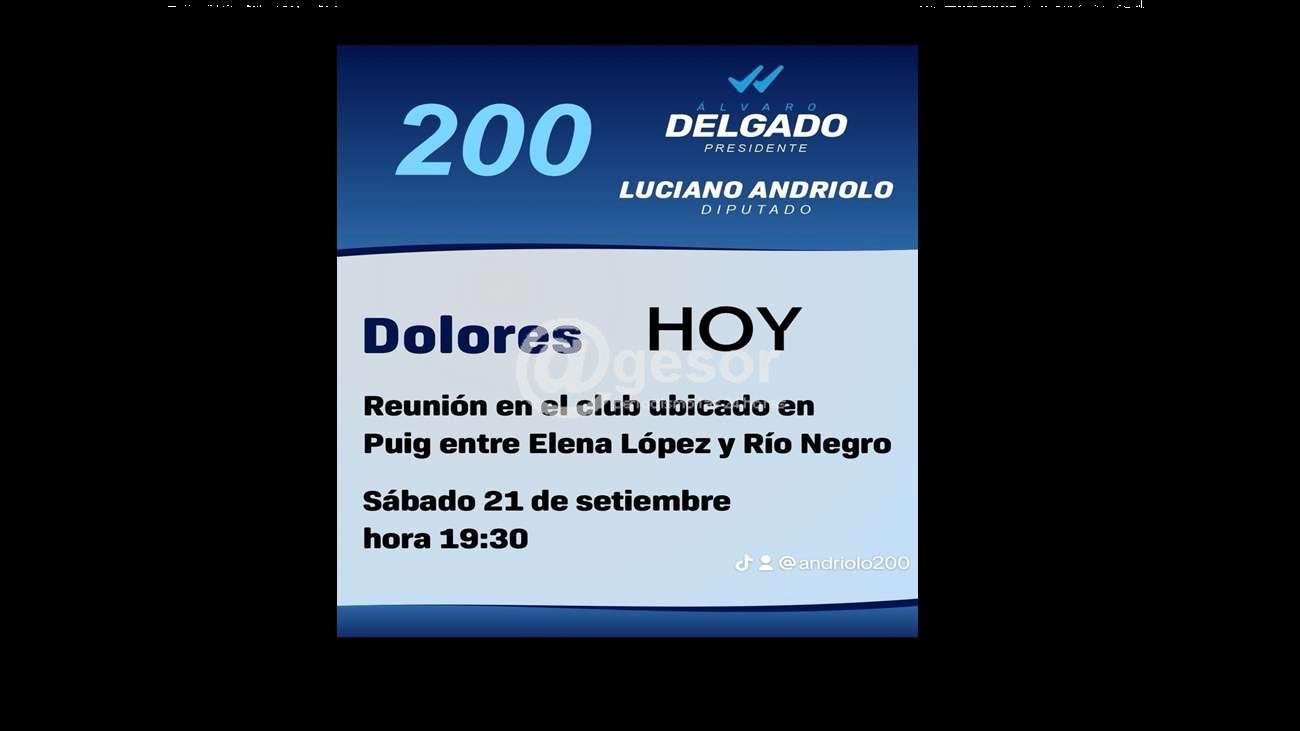 La Lista 200 del Partido Nacional está convocando a una reunión, para este sábado, a las 19,30 horas, en su local de Puig entre Elena López y Río Negro, en Dolores. Luciano Andriolo, candidato a diputado dialogará con los vecinos, de cara a las elecciones nacionales.
