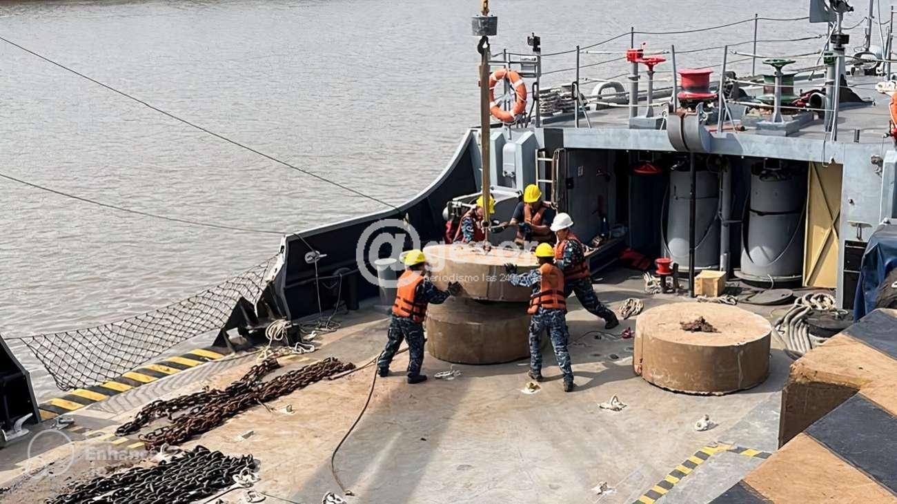El Puerto de Concepción del Uruguay se sumó a este plan de trabajos brindando los espacios logísticos y de amarre para que el buque pueda tener los Muelles 3 y 4 como base operativa para llevar adelante la tarea.