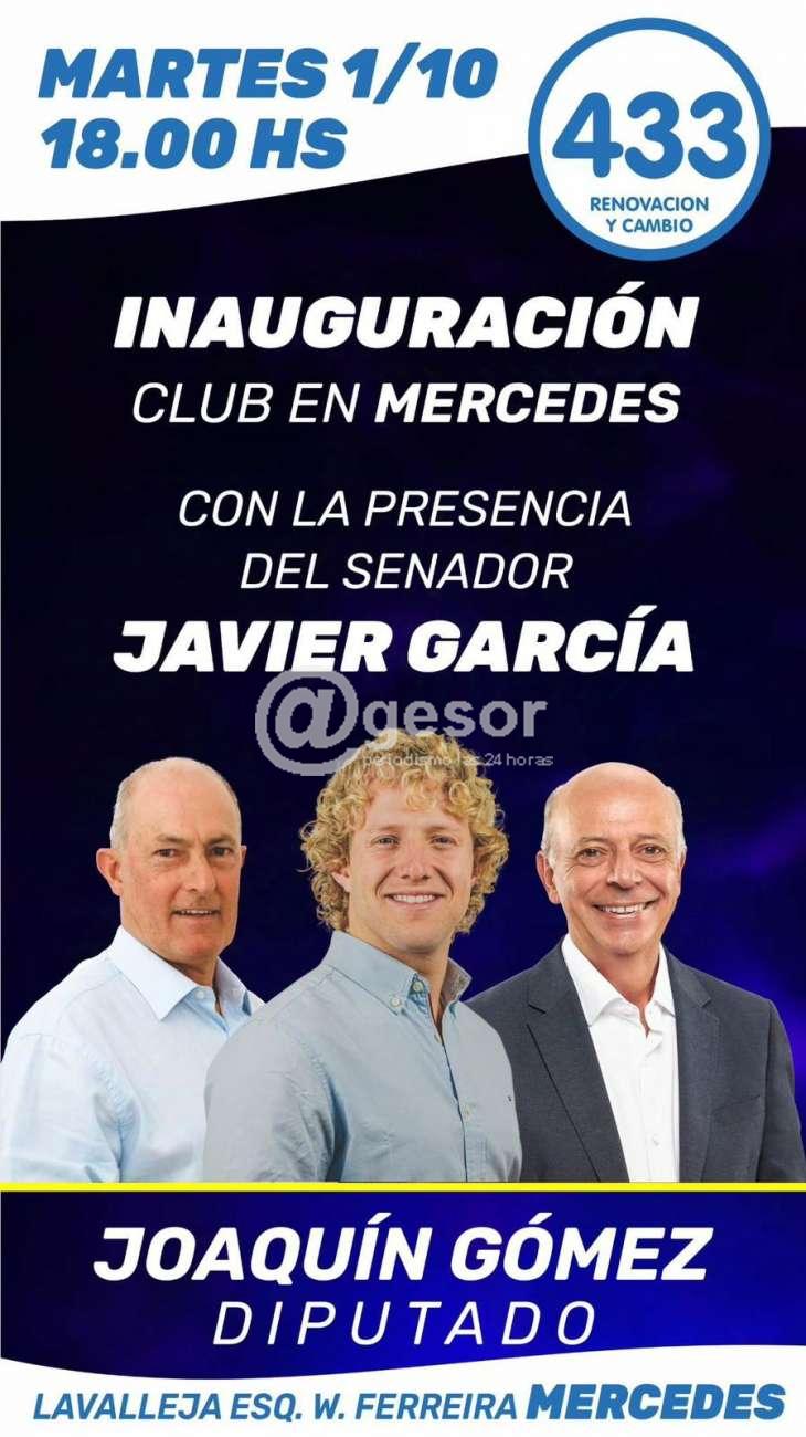 Este martes 1 de octubre inauguración de baluarte partidario de la 433 en Mercedes, con la fórmula de JOAQUÍN GÓMEZ - FEDERICO GARCÍA a la diputación y estará JAVIER GARCÍA candidato al Senado