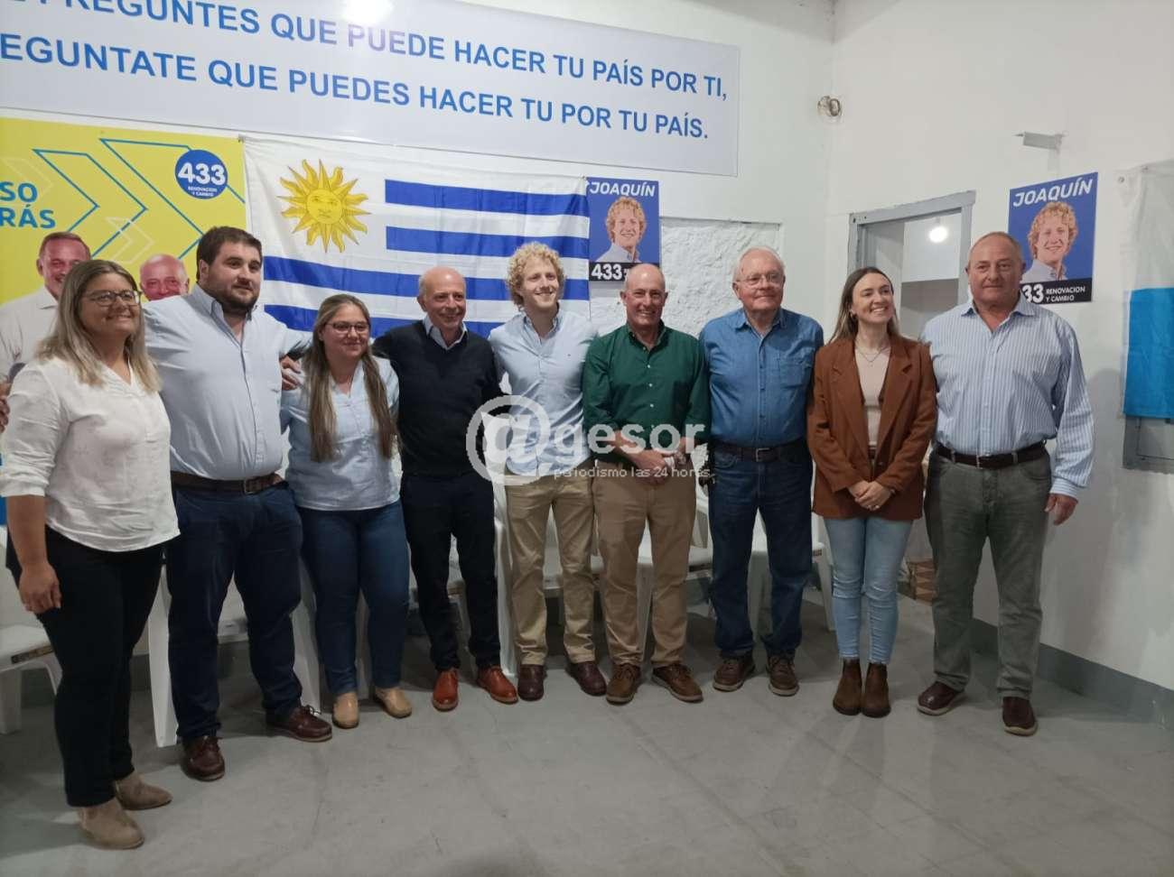 Saludarlo a José Luis y agradecerle porque también está bueno esto que haya, voy a referir a Joaquín, que haya un alcalde de la juventud de Joaquín que asuma entregar su vida al servicio público, y hacerlo por su departamento, y hacerlo como lo viene haciendo en Dolores, pero aspira a hacerlo a nivel nacional como diputado, representante nacional de Soriano, y todos sabemos que de ante un tiempo va a representar a Soriano de otros lugares bien cerquita de donde estamos. Así que es un enorme gusto. Y al señalar esta mesa, súmele Gastón, y me decía para cerrar el equipo, Claudia Bartalot y Patricia Alvarez, creo que en la foto también hay una señal política, que es una señal de unidad. Yo soy testigo, con Joaquín hablamos muchas veces en estos últimos 45 días, hablamos siempre, pero sobre todo en este momento de confeccionar las listas, y Joaquín tenía una obsesión positiva, que era la de conformar un equipo que tuviera diferentes sensibilidades, que pudiera conjugar, obviamente lo que él conjuga que es una ciudad tan importante, la segunda ciudad del departamento como es Dolores, pero también Mercedes, la capital departamental y la capital política del departamento, y ahí fue a buscar a mi tocayo, que tiene una experiencia sobre todo en el ámbito privado, productivo, y que también su introducción en la vida política, es bastante reciente, y aporta su visión desde un ámbito clave que es la producción nacional, y lo hizo gremialmente también, y Rosita, de su vocación y su servicio y su cercanía territorial, a Washington, que ocupa el equipo de los alcaldes con más experiencia, aportando justamente lo que es el sentir de la línea, y de una localidad centenaria, y Tatiana, que tiene también otra característica, su legislatura departamental, pero también su experiencia profesional y nacional, entonces creo que Joaquín hay que felicitarte, porque hay uno que hay que felicitar, que se tomó el tiempo de charlar y de insistir y de convencer, la verdad que en esto de la política no perder la artesanía virtuosa, la artesanía de saber, de no desesperarse por los tiempos, y saber que al final del camino tiene que cuajar en un gran equipo, así que la 433 es un flor de equipo con un gran liderazgo, que como bien dice la consigna, el eslogan de la lista, renovación y cambio.