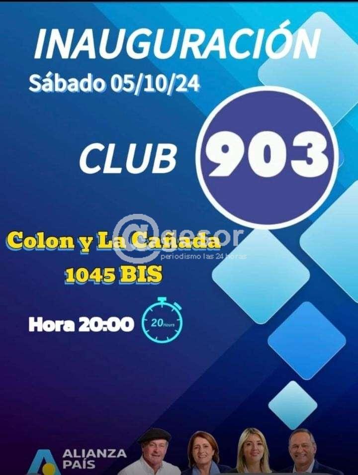 Este sábado a las 20.00 horas inauguración de club de la 903 con GUILLERMO y MARIA FAJARDO a la diputación