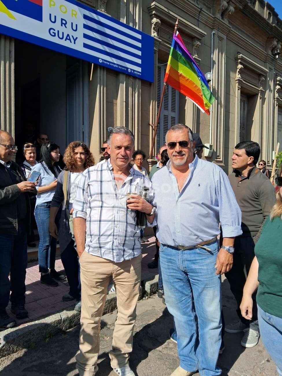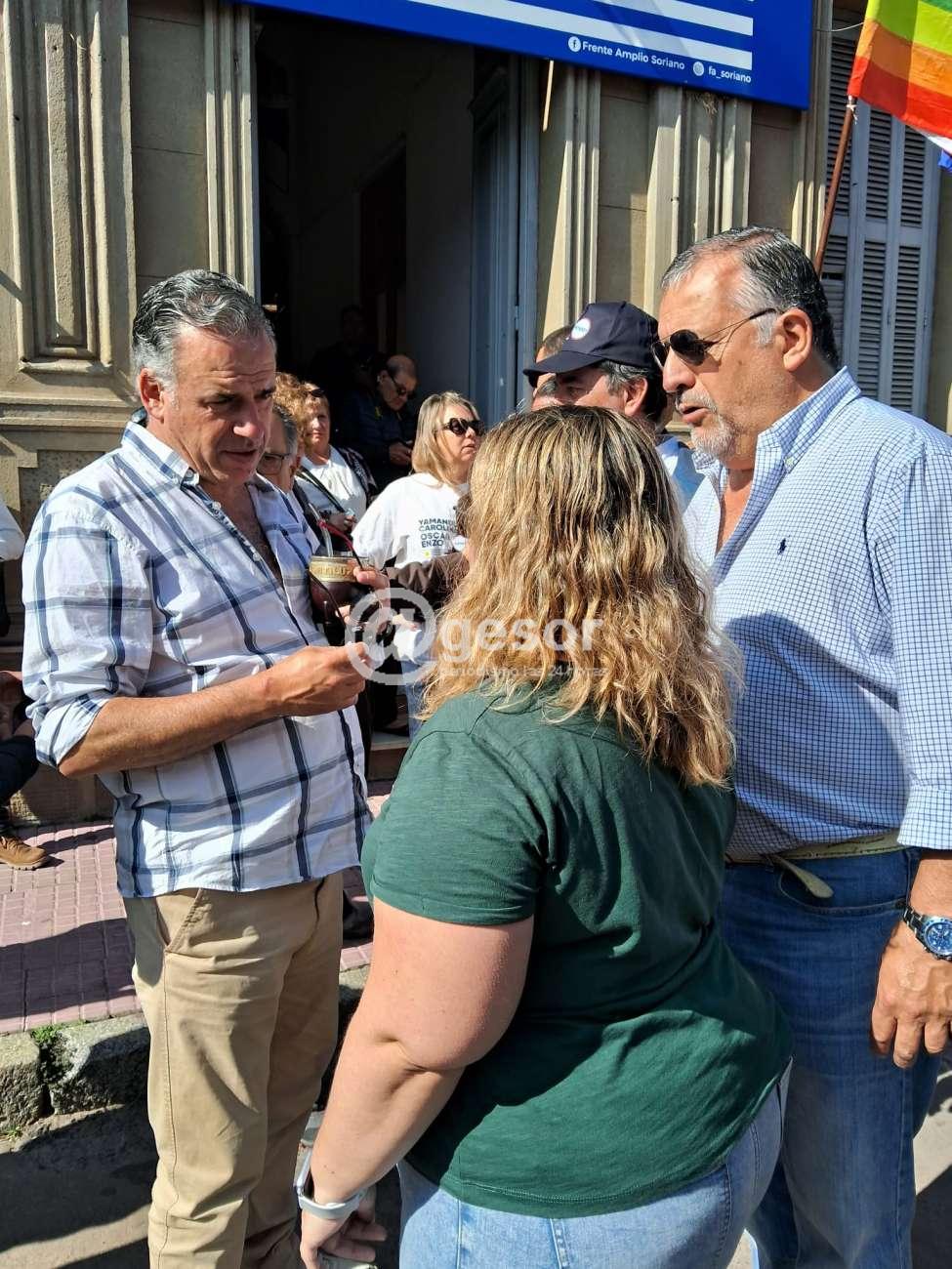 En las otras fotografías, JOSE SPOTURNO junto a YAMANDU ORSI en el momento de llegar a la sede del Frente Amplio a Mercedes, en una de las gráficas también con la Presidenta del FA Soriano, Marcela Parao.