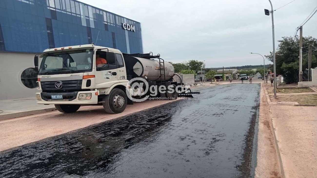 En ese sentido el departamento de Obras trabaja en la repavimentación de calle Herrero y Espinosa, desde Avenida Fregeiro hasta Garibaldi, donde se procedió a realizar la imprimación asfáltica para después comenzar a aplicar el asfalto con gravilla.